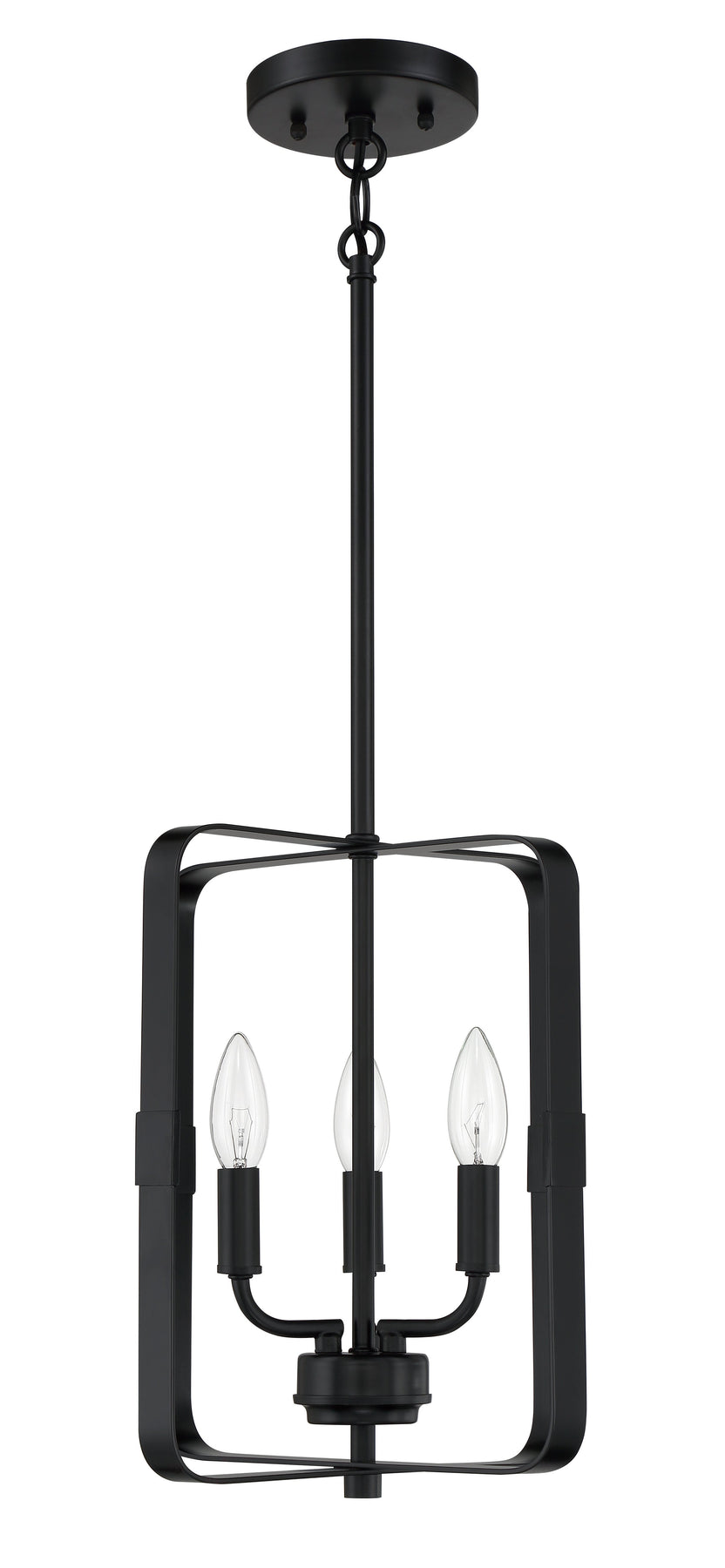 The Stowe 3 Light Foyer in Flat Black is a perfect choice for creating a warm and inviting atmosphere. This elegant fixture features three light sockets that require candelabra base 60-watt bulbs (not included). With dimensions of 12 inches in depth, 12 inches in width, and a height of 13.75 inches, it is designed for indoor use and comes with downrods measuring 12 inches and 6 inches for adjustable height. The canopy measures 5 inches by 5 inches with a height of 0.79 inches. Enhance your space with this stylish and functional piece, backed by a 1-year limited warranty.