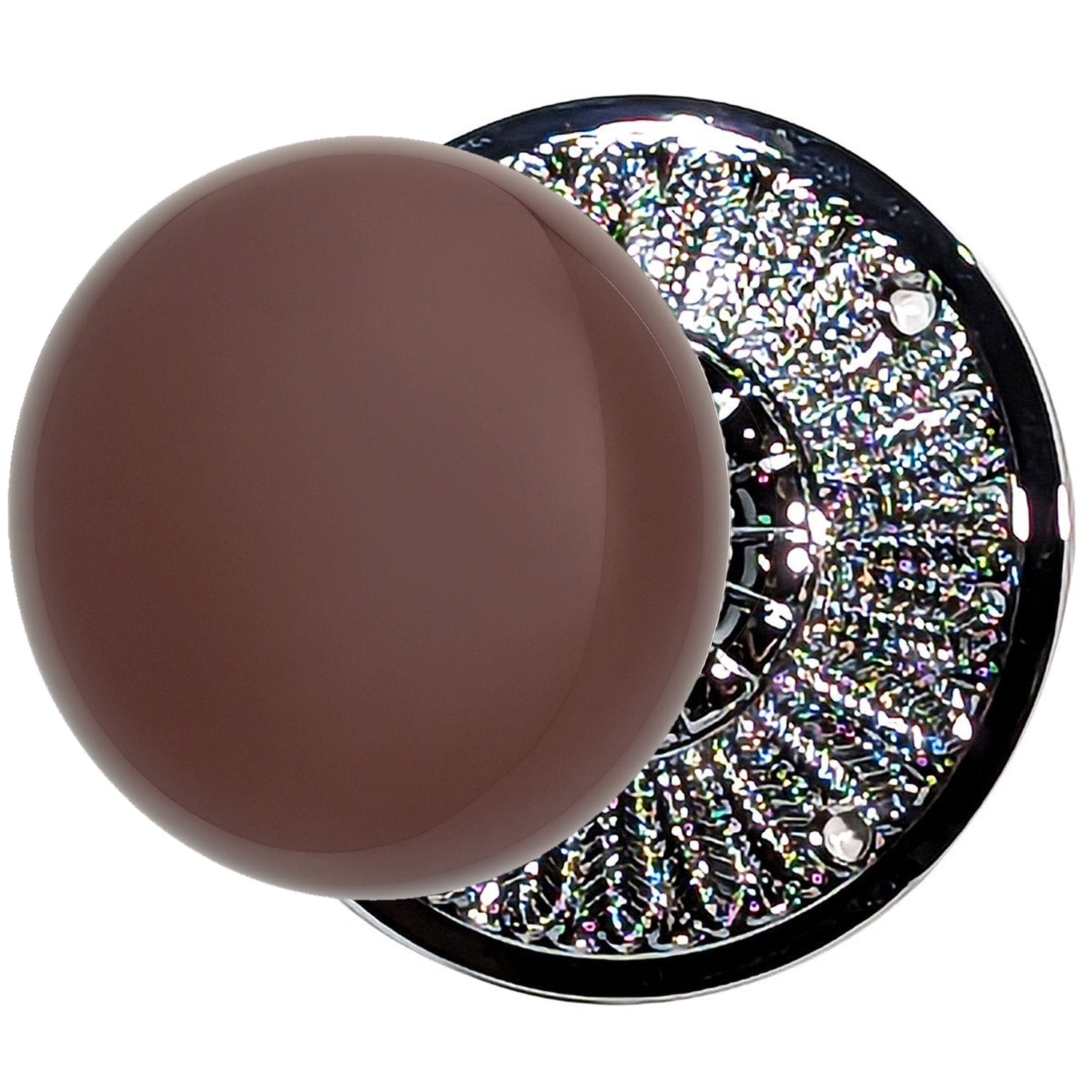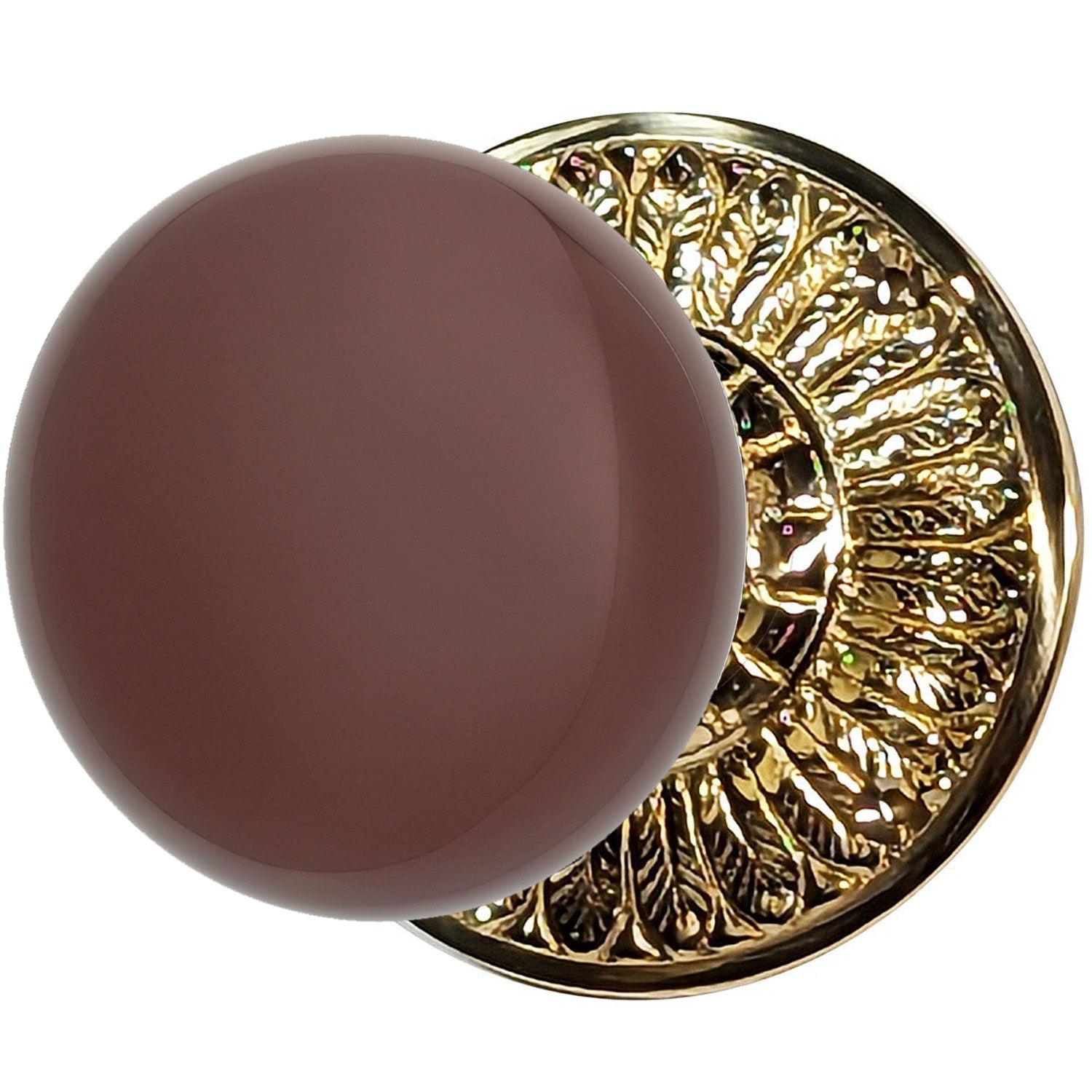 Brown Porcelain Door Knob with Brass Feathers Rosette