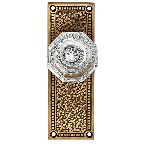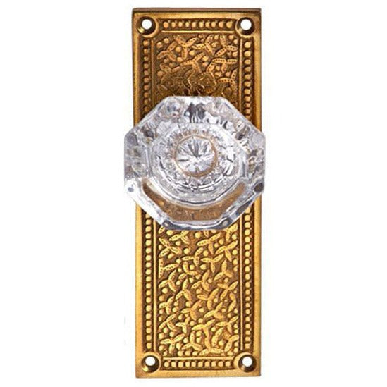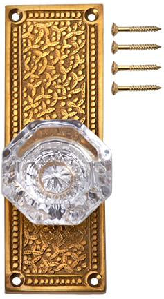 Rice Pattern Backplate Door Set with Octagon Crystal Door Knobs (Several Finishes Available)