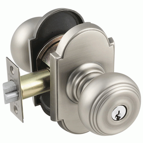 This door knob is constructed from solid brass and measures 2 5/16 inches overall with a 2 5/8 inch projection. Thumb turn locking mechanism on adjoining knob. The finish is shown in Antique Nickel. Includes adjustable latch (2 3/8 inches and 2 3/4 inches backsets), strikeplate, two levers and two door rosettes. This set is made for modern doors and it fits any door thickness between 1 1/4 inch to 1 7/8 inches thick. Key-In knobs are larger than double dummy and non-locking knobs to accommodate the lock. This door lever set comes complete with mounting hardware. The average lead time for this knob set is approximately 3 to 5 business days.