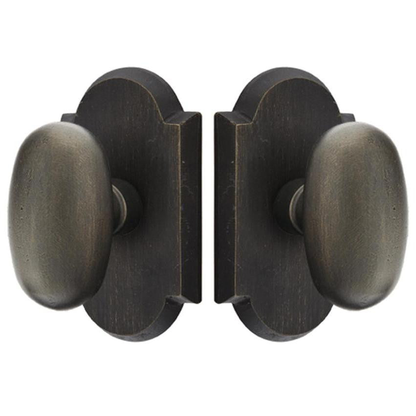 The Egg door knob set is constructed from solid brass material and features a sandcast style design. Measures 2 3/4 inches in diameter with a 3 inch projection. Functional sets come complete with the functioning hardware and a 2 3/8 inch backset is standard. A 2 3/4 inch backset is also available upon request. Comes complete with mounting hardware. This particular product has a lead time of approximately 3 to 5 business days.