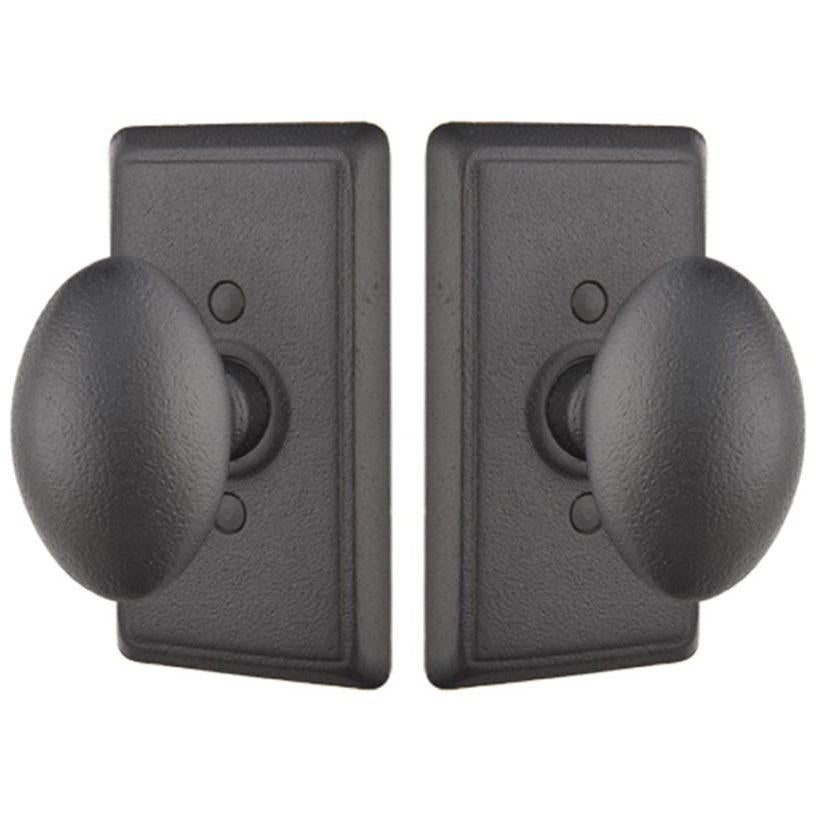 Solid Brass Savannah Door Knob Set With Rectangular Rosette - The Savannah style door knob set features a solid brass construction with a wrought steel rosette. Measures 2 1/2 inches in diameter with a 2 5/8 inch projection. Functional sets come complete with the functioning hardware and a 2 3/8 inch backset is standard. A 2 3/4 inch backset is also available upon request. Comes complete with mounting hardware. This particular product has a lead time of approximately 3 to 5 business days.