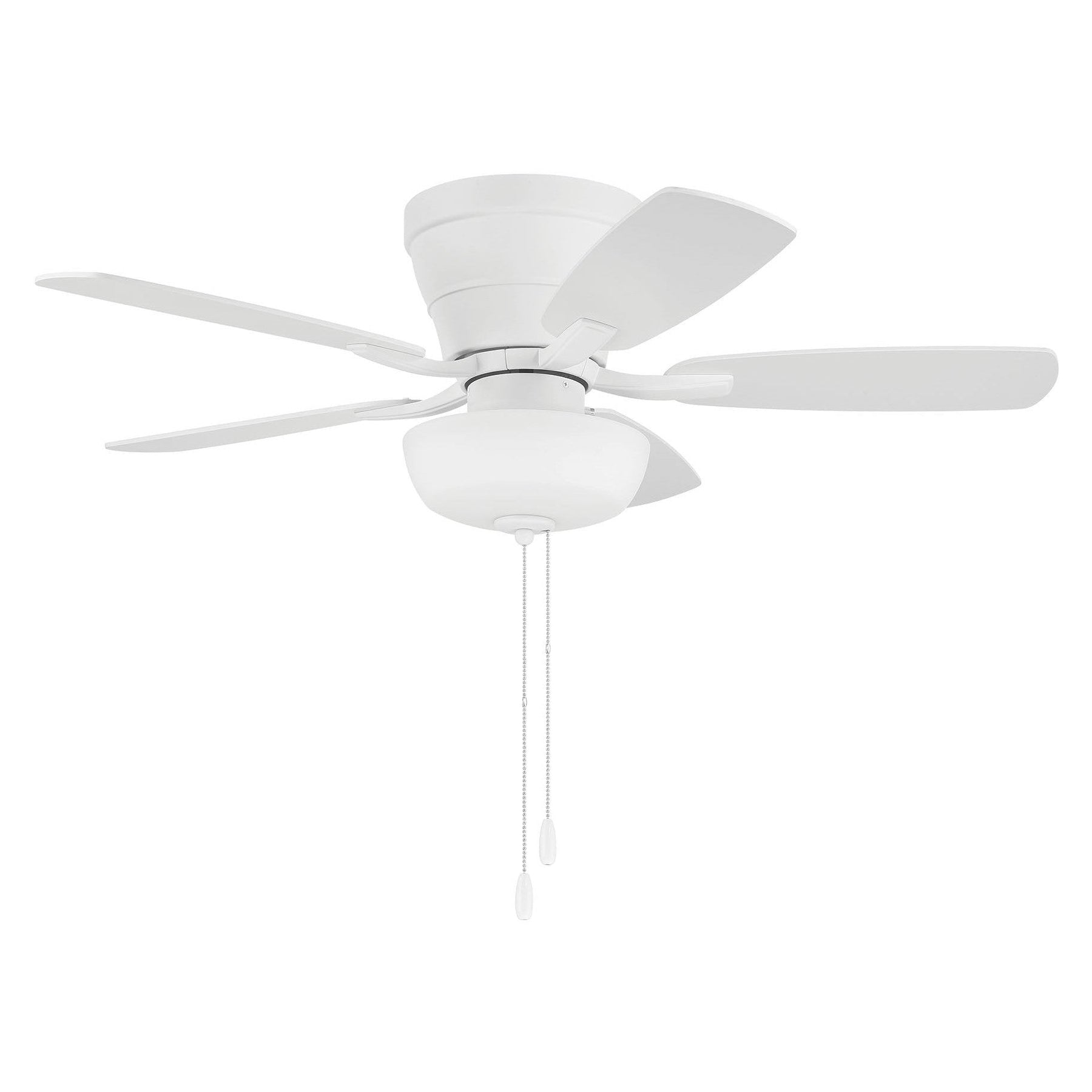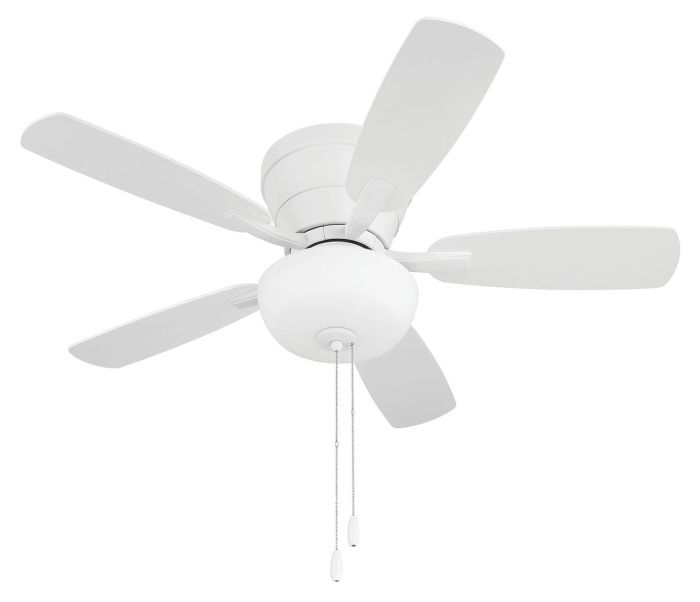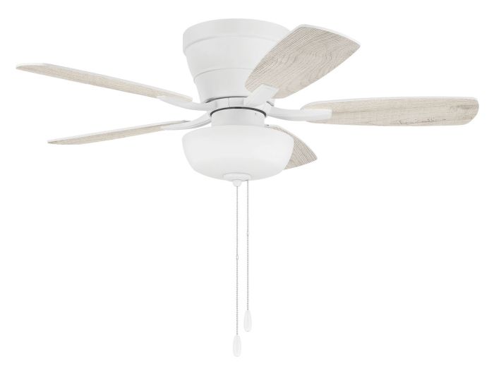 The Wheeler 42" indoor flushmount ceiling fan with bowl light kit by Craftmade combines classic style with low ceiling compatibility and is ideal for smaller spaces. Featuring custom reversible blades, this efficient pull chain controlled, 3-speed, reversible motor with included optional bowl light kit with 2 x 9W dimmable LED bulbs included.