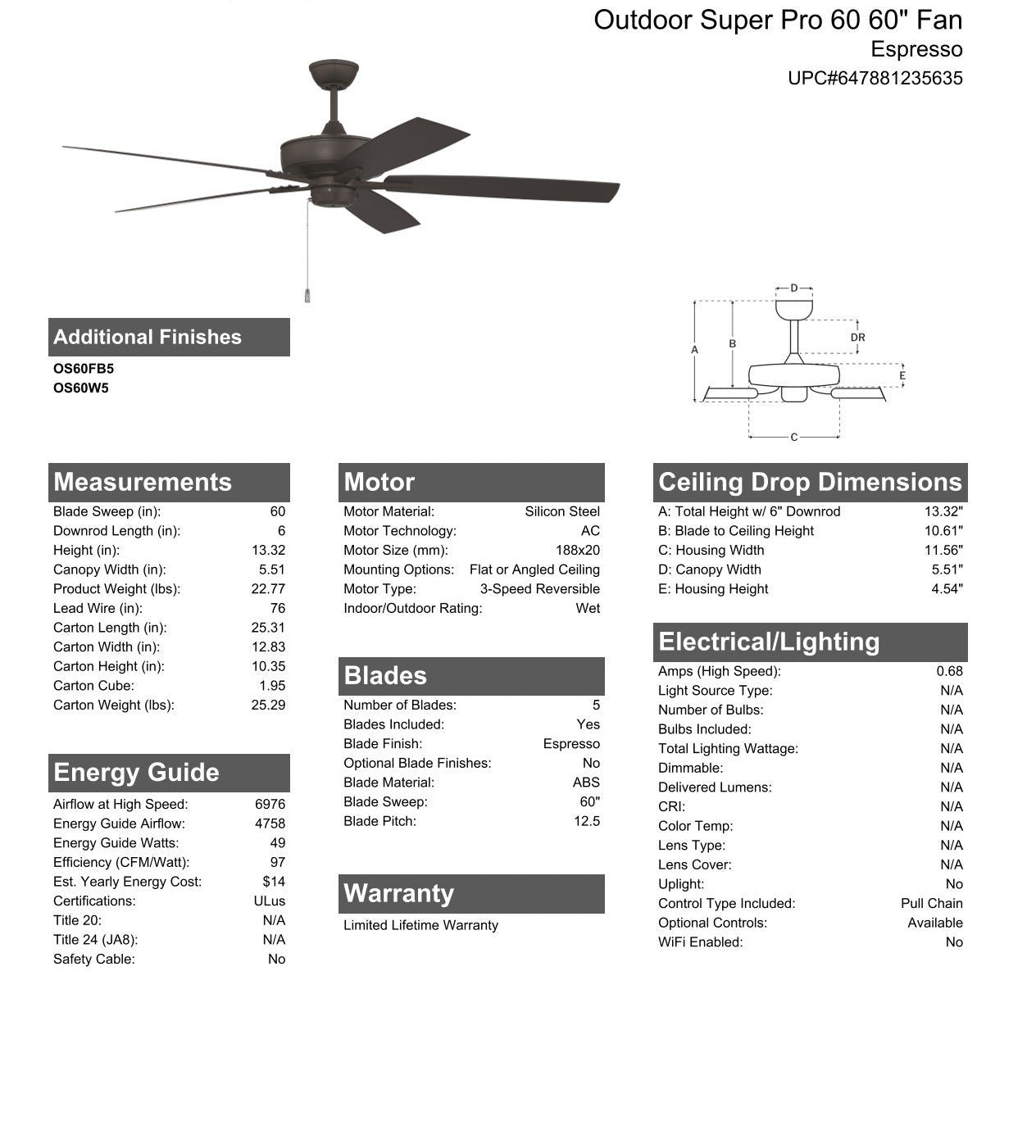 60" Outdoor Super Pro 60 in Espresso w/ Espresso Blades