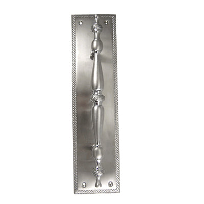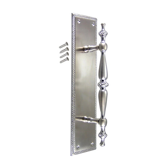11 1/2 Inch Solid Brass Georgian Roped Style Door Pull and Plate (Satin Nickel Finish)