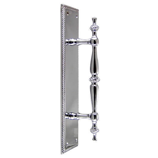 11 1/2 Inch Solid Brass Georgian Roped Style Door Pull and Plate (Polished Chrome Finish)
