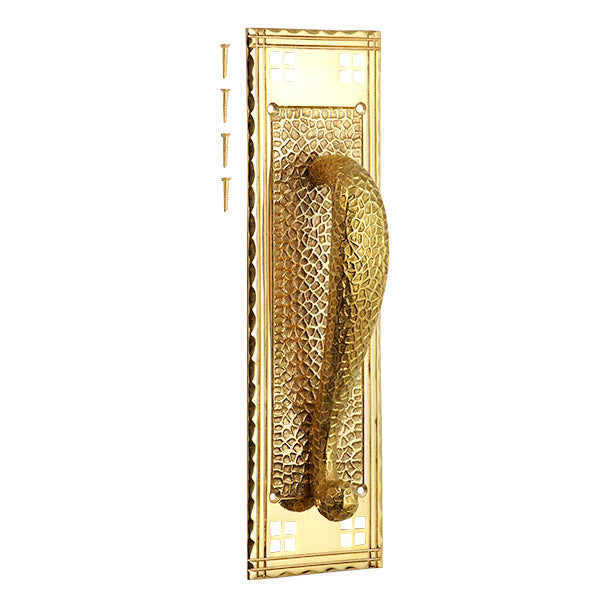 12 Inch Arts & Crafts Style Door Pull & Plate (Lacquered Brass Finish)