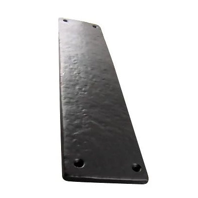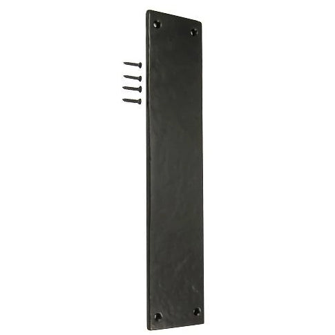 Solid Rough Iron Push & Plate: measures approximately 12 inches tall and 2 1/2 inches wide and comes complete with mounting hardware.