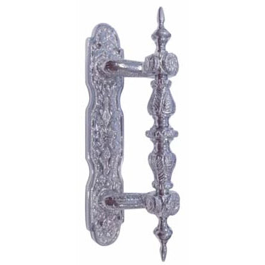 6 1/4 Inch Solid Brass Victorian Style Handle Pull (Polished Chrome Finish) - Measures 6 1/4 inches overall and it can be mounted with four wood screws from the front. Alternatively, it can be rear mounted with a 3 1/2 inch center to center mounting distance. This pull can be mounted so that it slants to either the right or the left. Comes complete with mounting hardware.