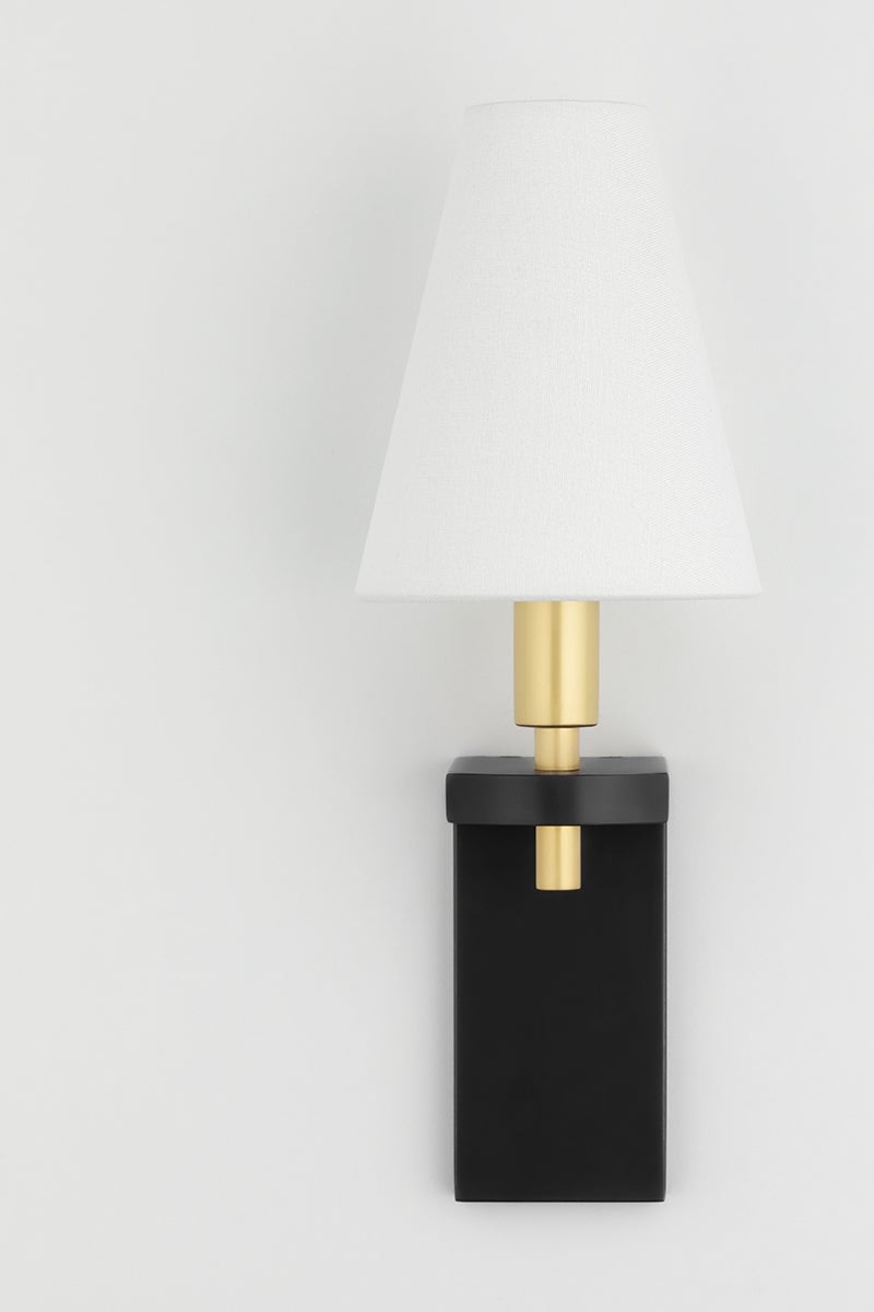 The Dooley Wall Sconce by Hudson Valley Lighting features a sophisticated design, perfect for enhancing any decor. With a width of 4.50 inches and a height of 12.75 inches, this sconce includes a beautiful white linen shade that emits soft, inviting light. It is compatible with one E12 candelabra base bulb (40W max, not included) and has an extension of 4.75 inches. The sconce is UL Damp rated, making it ideal for humid environments, and is available in two stunning finish options: Aged Old Bronze and Polished Nickel.