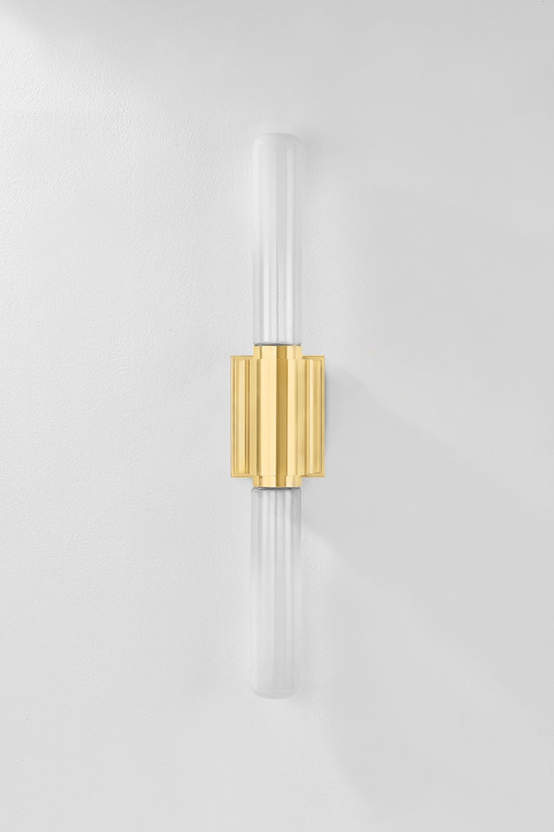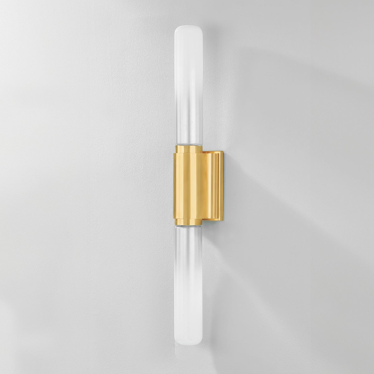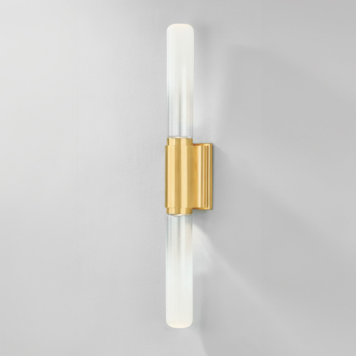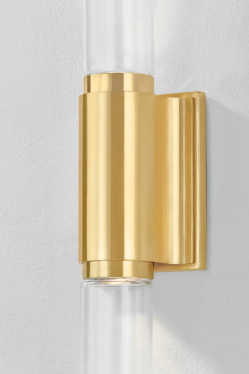 The Colrain Wall Sconce by Hudson Valley Lighting is a sophisticated choice for illuminating your space. This dual-lamp fixture features a stylish glass shade and requires two GU10 sockets, accommodating a maximum wattage of 10W each. With a width of 5.25 inches, a height of 31.75 inches, and an extension of 3.75 inches, it fits perfectly in various settings. Additionally, the sconce has a top-to-center measurement of 16.00 inches and comes in two elegant finish options: Aged Brass and Polished Nickel. Its ETL Damp rating ensures suitability for humid environments, making it a versatile addition to your home decor.