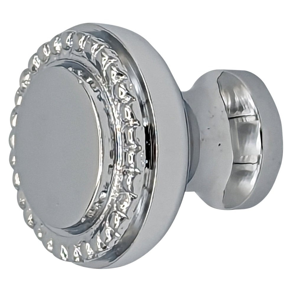 This cabinet knob measures 1 inch in diameter with a projection of 1 inch. We carry this style in several sizes and all come complete with mounting hardware.