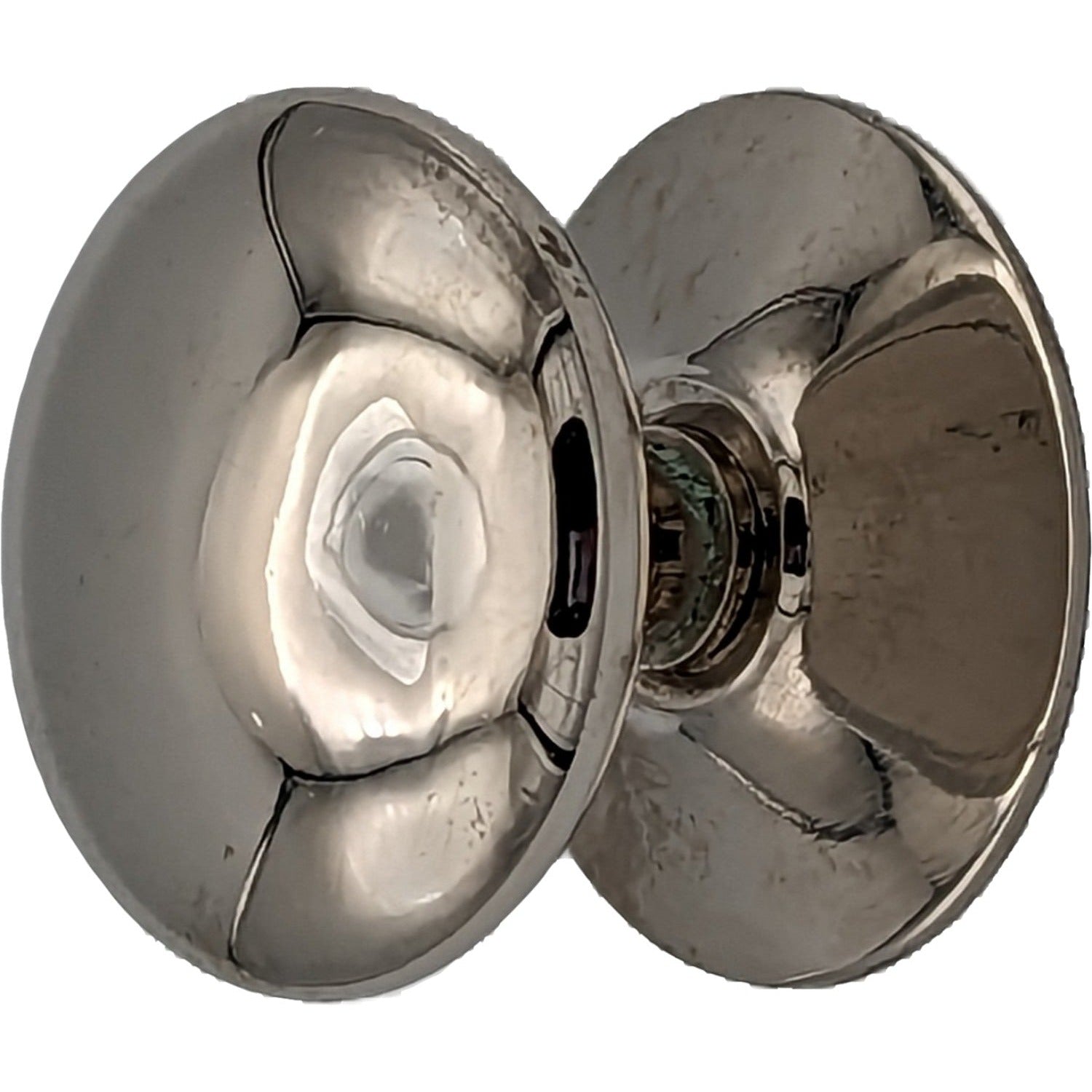 This cabinet knob measures approximately 1 1/4 inch in diameter with a projection of approximately 1 inch.This item comes with a removable back plate. Available in a variety of fine designer finishes. Comes complete with mounting screw and back plate. This particular product has a lead time of approximately 1 to 2 business days.