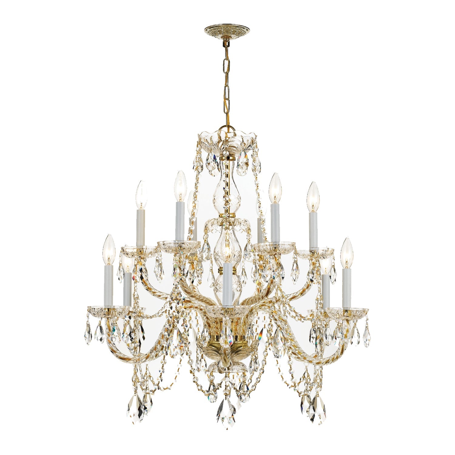 Traditional Crystal 12 Light Swarovski Strass Crystal Polished Brass Chandelier