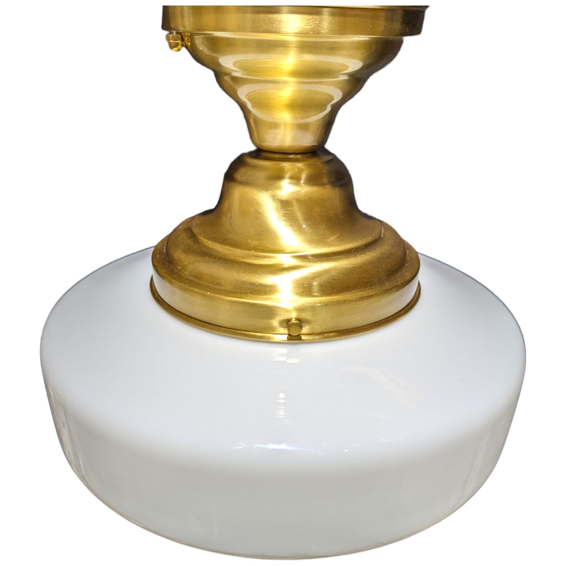 The 15 1/2 Inch Manhattan Skyscraper Nouveau Style Semi-Flush Mount Light, with its graceful traditional lines and Satin Brass finish, will bring sophistication and grandeur to your home. Its tasteful design and stately construction make this light fixture the perfect centerpiece in any room.