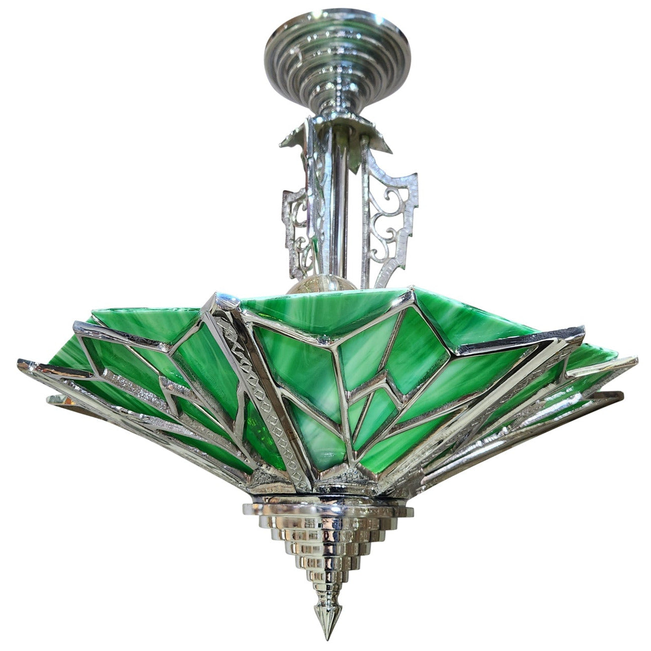 Each chandelier has seven custom made stained glass panels, The average lead time for this light is approximately 2 to 4 business days and each one is custom built. Please note each piece of glass has its own striations and variations and may not be an exact match to the picture shown.