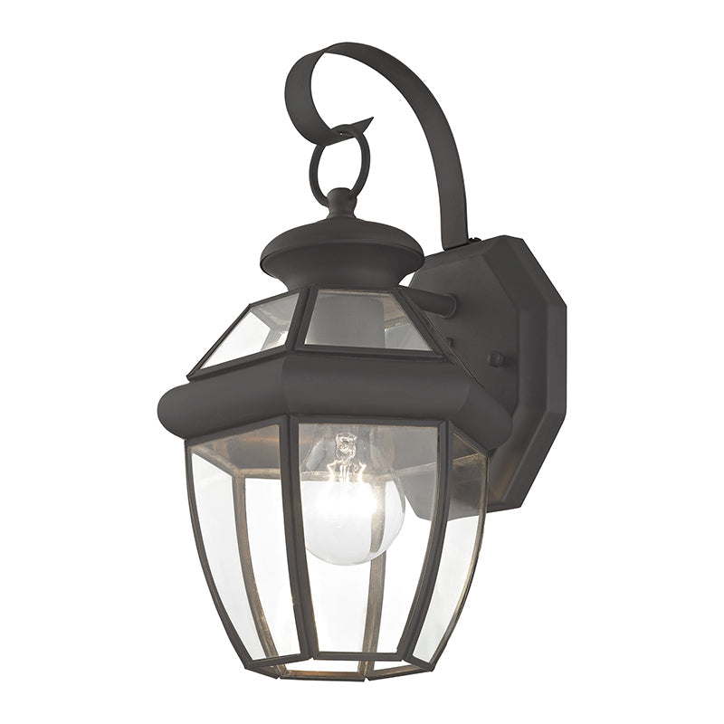 The 2051-07 Monterey Wall Lantern features a stunning traditional design that beautifully marries clean lines with elegant curves of clear flat glass. Measuring 7 inches in width and 12.5 inches in height, this fixture is crafted from solid brass, ensuring durability and a lasting finish in a rich bronze tone. With a medium base bulb (not included) accommodating a maximum wattage of 100, it is perfect for illuminating outdoor spaces. The lantern is rated for both damp and wet locations, making it a versatile choice for various outdoor settings.