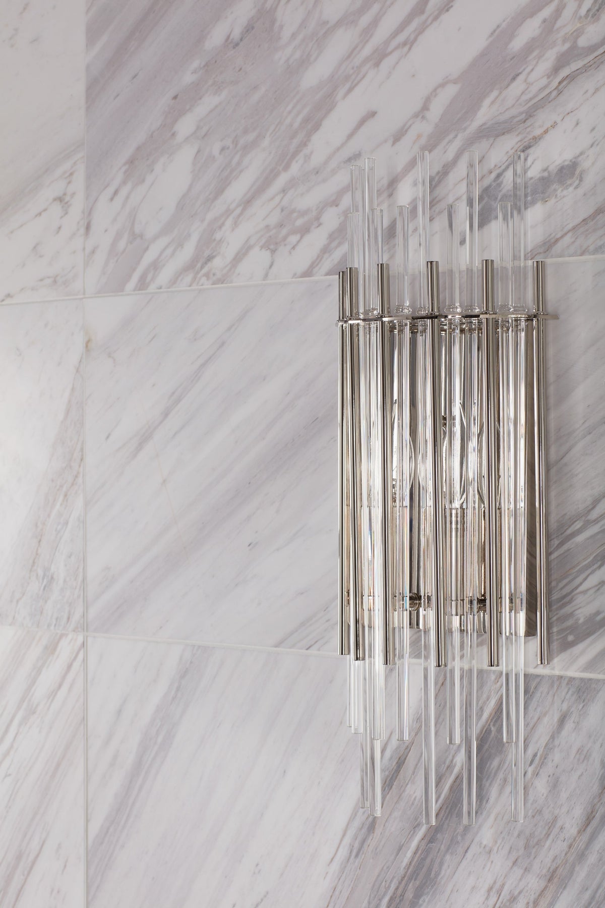 The Wallis Wall Sconce by Hudson Valley Lighting is a beautifully designed lighting fixture, perfect for adding elegance to your space. It features a striking clear glass and steel shade that complements its polished nickel or aged brass finish options. With dimensions of 8 inches in width and 19.75 inches in height, this sconce has a 3.5-inch extension and is equipped to hold two E12 candelabra base bulbs with a maximum wattage of 60W each (bulbs not included). The sconce is UL Damp rated, making it suitable for use in humid environments such as bathrooms.