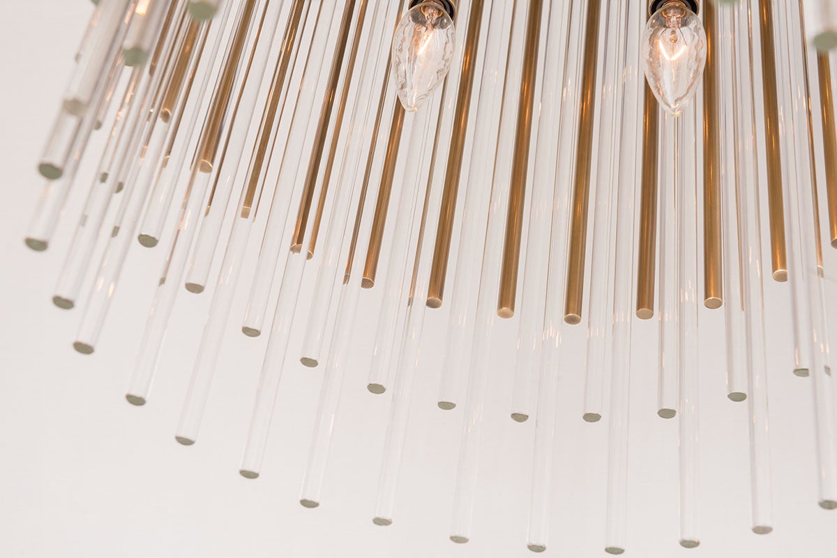 The Wallis Wall Sconce by Hudson Valley Lighting is a stunning addition to any space, featuring a sophisticated design with a width of 15.00 inches and a height of 26.00 inches. Constructed from high-quality glass and steel, the sconce showcases a clear shade with an Aged Brass finish, providing a modern touch. It accommodates eight E12 candelabra base bulbs (not included), with a recommended wattage of 60W each, ensuring ample illumination. Additionally, the sconce is UL Damp rated, making it suitable for various environments, including bathrooms and other humid areas.