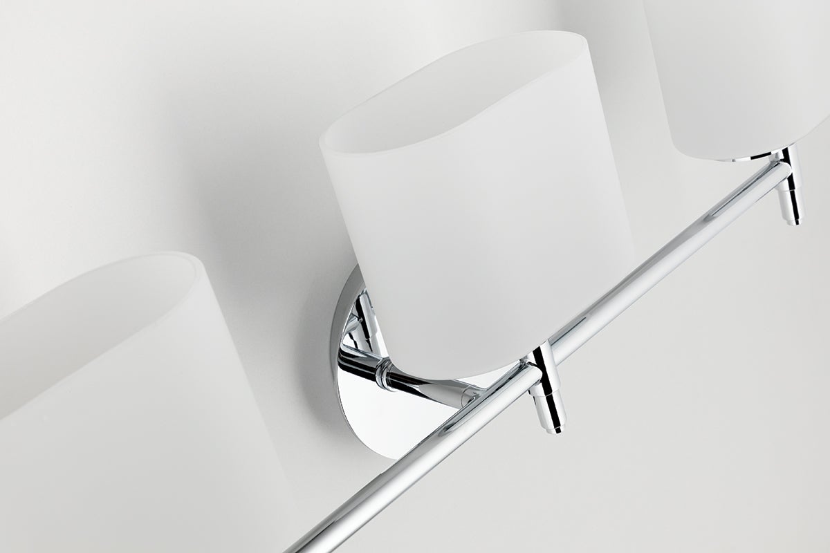 The Trinity Wall Sconce by Hudson Valley Lighting is a striking addition to any space, boasting a modern design with its opal matte glass shade. This three-lamp sconce features an impressive total wattage of 150W, utilizing G9 LED bulbs for energy-efficient illumination. With a width/diameter of 22.25 inches, a height of 8.00 inches, and an extension of 4.75 inches, it offers versatility in various settings. The fixture is available in sleek Polished Chrome and Satin Nickel finishes, and is rated for damp locations, making it ideal for bathrooms or other humid environments.