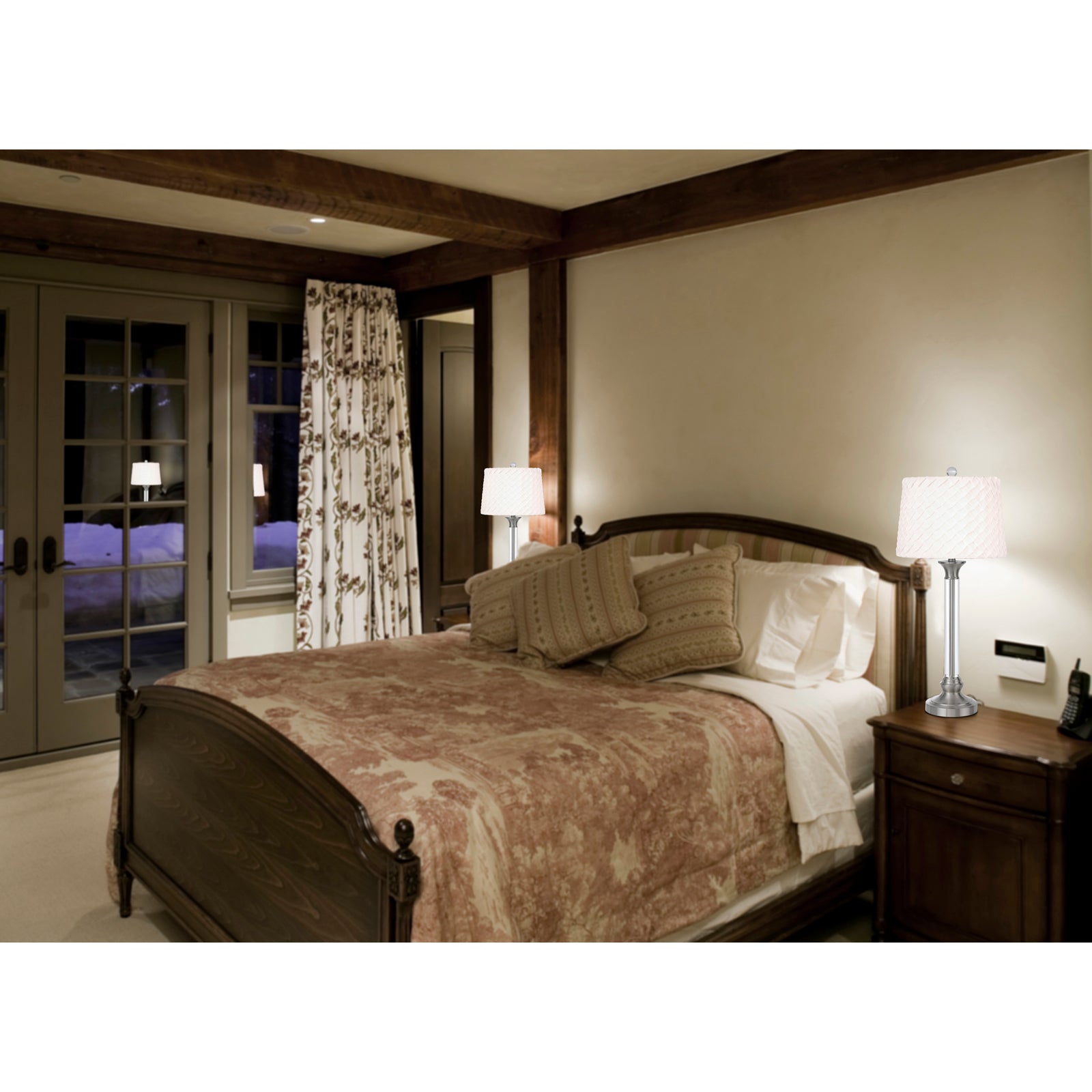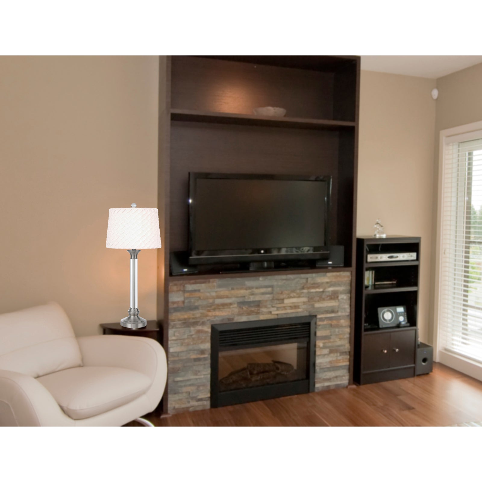 The BO-2998TB Ruston 150W 3-way table lamp features a stunning blend of crystal and metal, making it a perfect addition to any living space. With its elegant pleated hardback shade and a durable brushed steel base, this lamp offers both style and functionality. It is designed to accommodate one E26 bulb (not included), with a maximum wattage of 150W. The lamp's dimensions are 15.00 inches in length, 15.50 inches in width, and 18.50 inches in height, making it an ideal fit next to a sitting area. The layered design is topped with a decorative crystal finial, enhancing its sophisticated look. This lamp comes with a one-year warranty, ensuring quality and durability.