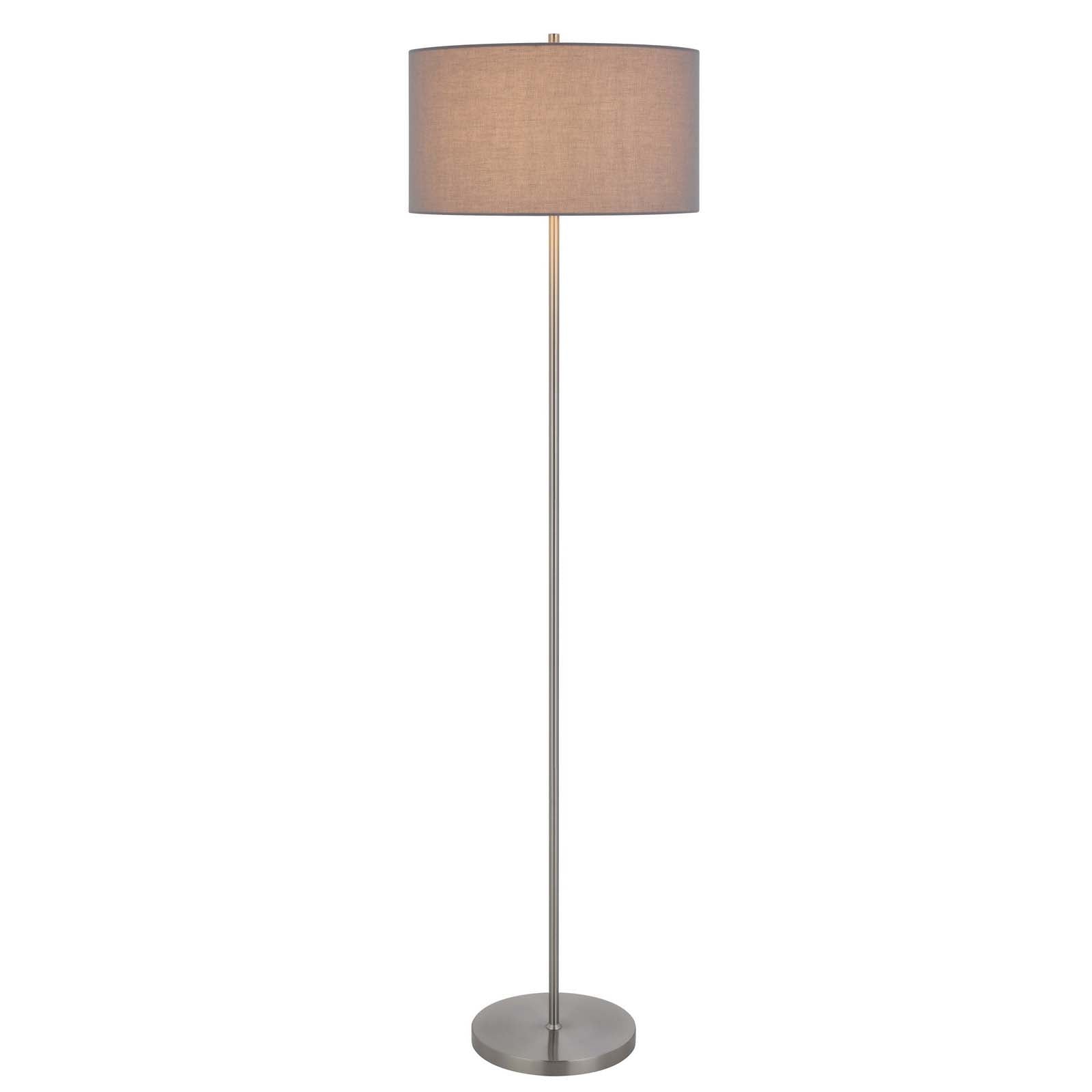 The Cromwell Metal Floor Lamp in Brushed Steel is a stylish and functional lighting solution for any living space. With a durable metal construction, this elegant pole lamp features a smoke drum shade that elegantly contrasts with the silver frame. It utilizes a three-way switch for customizable lighting, and includes a rotary switch on the socket for easy operation. Measuring 17.00 inches in length, 17.00 inches in width, and 12.30 inches in height, it requires a single E26 base bulb with a maximum wattage of 150W. Ideal for smaller areas, this lamp ships in one carton and requires little to no assembly, making it a convenient addition to your home decor.