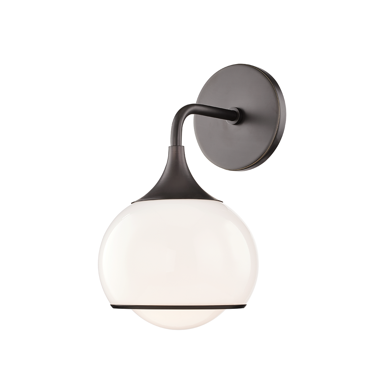 The Reese Wall Sconce by Mitzi is a stunning addition to any space, designed to elevate your interior decor with its elegant opal glossy glass shade. This fixture measures 6.75 inches in width, 12.25 inches in height, and features a 7.25-inch extension. It accommodates one E26 medium base bulb (not included) with a maximum wattage of 60W, ensuring ample illumination. Available in three fashionable finishes—Aged Brass, Old Bronze, and Polished Nickel—this UL Damp rated sconce is ideal for use in bathrooms and other humid areas, blending style and functionality seamlessly.