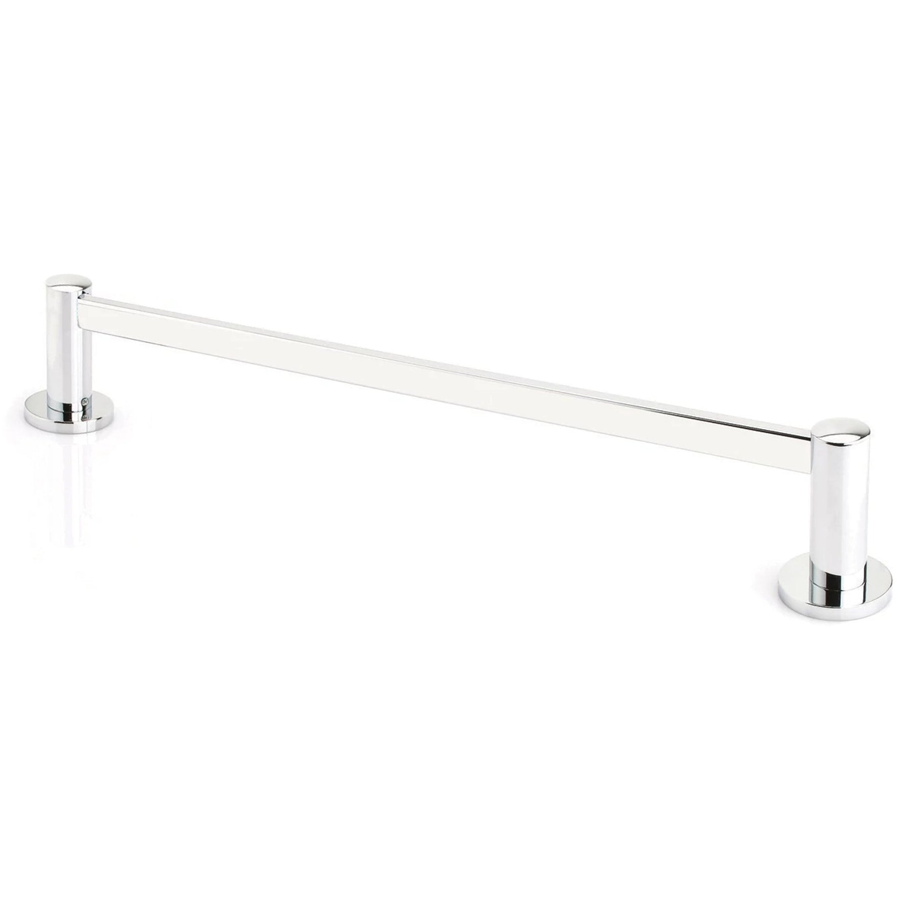 This Modern Brass Towel Bar is available in a variety of rosettes and finishes. For all lengths, the bar width dimensions are 5/16" x 3/4". Comes complete with mounting hardware. The average lead time for this product is approximately 3-5 business days.