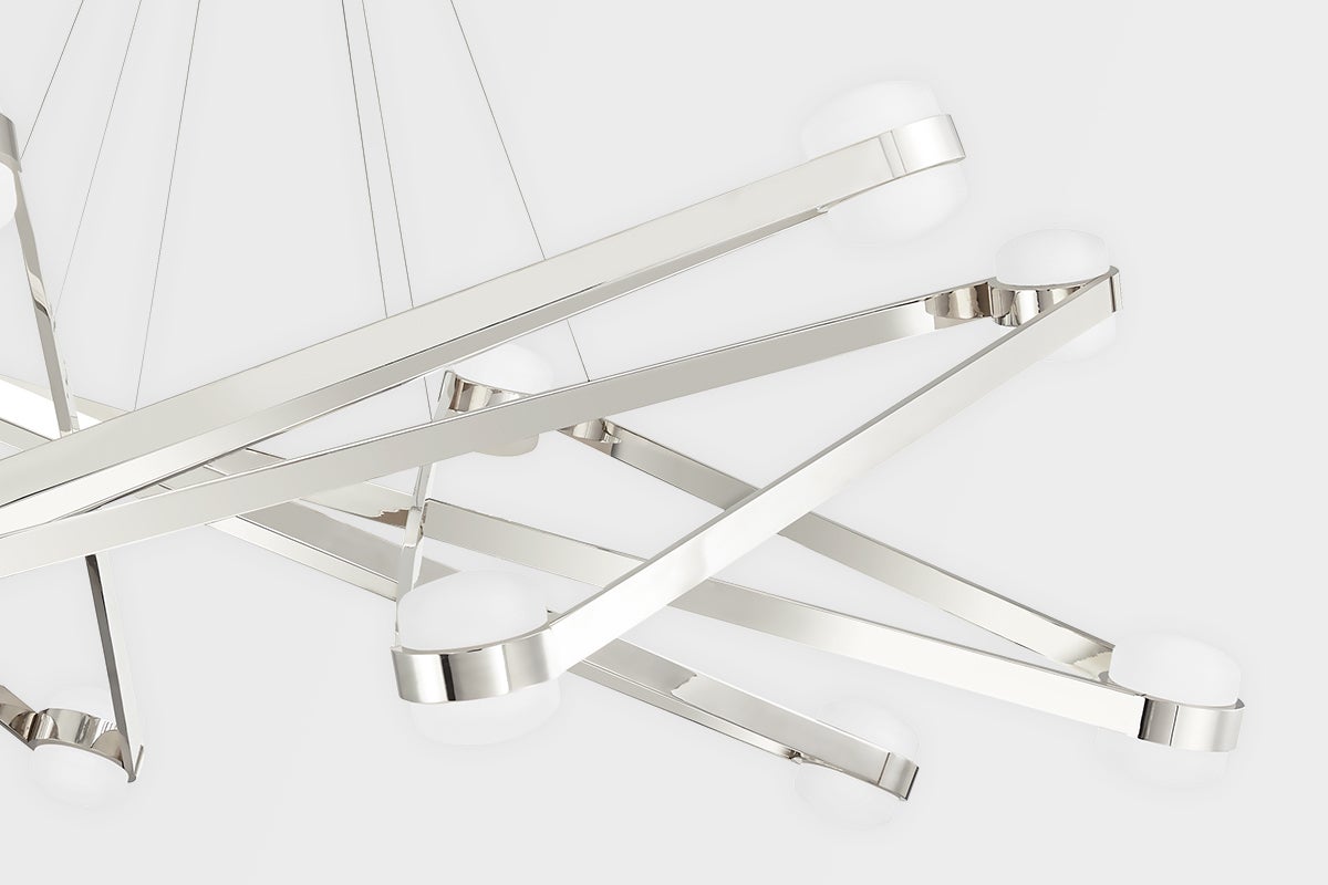 The Orbit Chandelier by Hudson Valley Lighting is a striking lighting fixture that elegantly blends modern design with functionality. With a generous diameter of 57.50 inches and a height of 17.00 inches, this chandelier features 12 integrated LED lamps that produce an impressive 3275 lumens, providing brilliant illumination. The fixture has a color temperature of 2700K and a high color rendering index (CRI) of 90, ensuring vibrant and true colors in your space. Available in two exquisite finishes, Aged Brass and Polished Nickel, the Orbit is field serviceable for ease of maintenance, while its UL Damp rating makes it suitable for various residential settings.