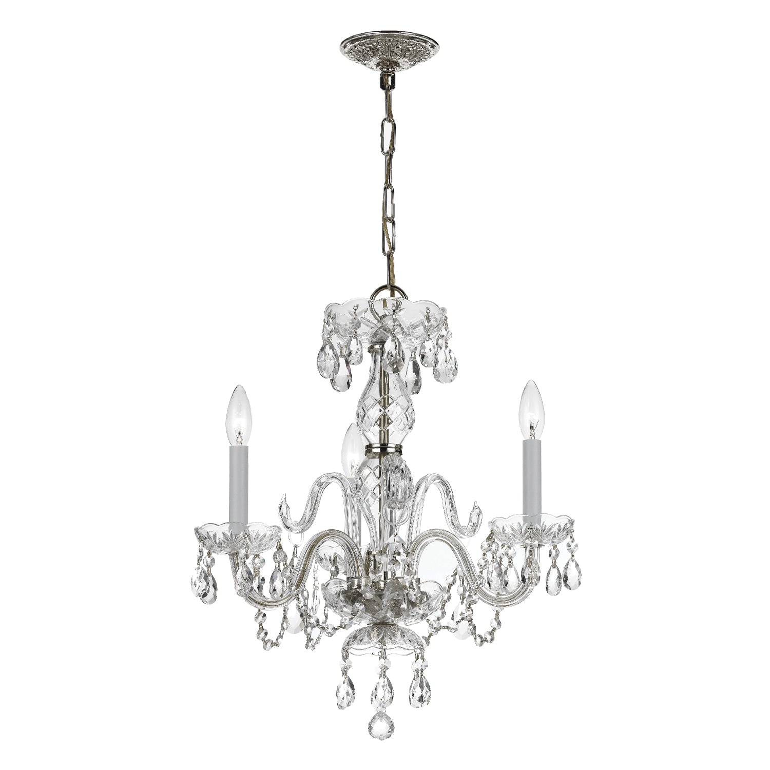 Traditional Crystal 3 Light Swarovski Strass Crystal Polished Chrome Mini Chandelier
