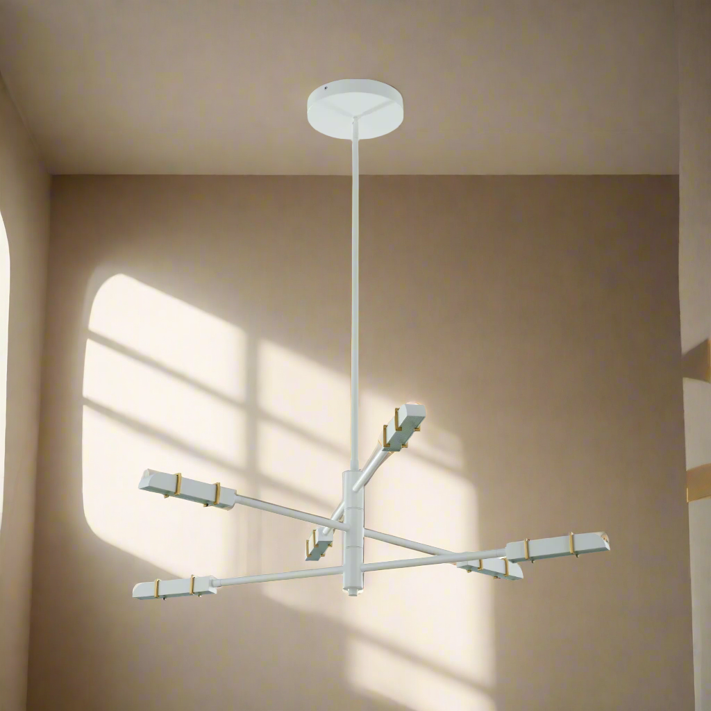 The Concorde 6 Light LED Chandelier is a stunning addition to any modern décor, beautifully combining functionality and style. This chandelier features a chic satin brass and matte white finish, creating a striking visual appeal. Measuring 32 inches in width and 19 inches in height, it is designed to provide ample illumination with integrated LED technology, delivering 15 watts of power at a warm 3000K, 90 CRI, and 1230 lumens. The fixture includes a dimmable function, allowing for customization of brightness to suit your mood. It is constructed from durable steel and glass, ensuring longevity and safety with a DRY safety rating. Perfect for both residential and commercial spaces, the Concorde chandelier requires partial assembly and includes bulbs with a 96-inch wire length, showcasing a modern mid-century design that is sure to be a conversation starter.
