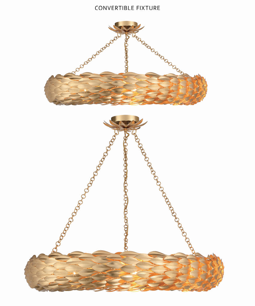 Layers of individual wrought iron leaves deliver a stunning, unique, and functional light. The tailored elegance of the shimmering metallic florals is perfect for a transitional home though versatile enough to be incorporated into any modern design. While ideal for a bedroom, living area, or kitchen, it can be used anywhere you want to add a bit of glam.