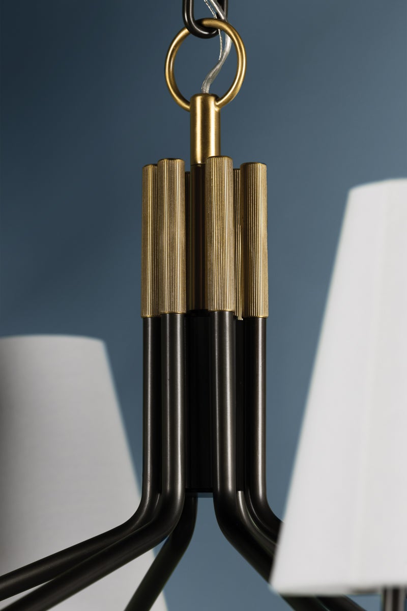 The Stanwyck Chandelier by Hudson Valley Lighting is a stunning centerpiece for any room, featuring a unique design with a width of 31.50 inches and a height of 14.25 inches. This elegant fixture requires six E26 medium base bulbs (not included), with a recommended wattage of 8.00W each. It offers a choice of finishes in Aged Brass and Distressed Bronze, allowing it to complement various decor styles. Designed for versatility, this chandelier is not plug-in and is UL Damp rated, making it suitable for areas subject to moisture.