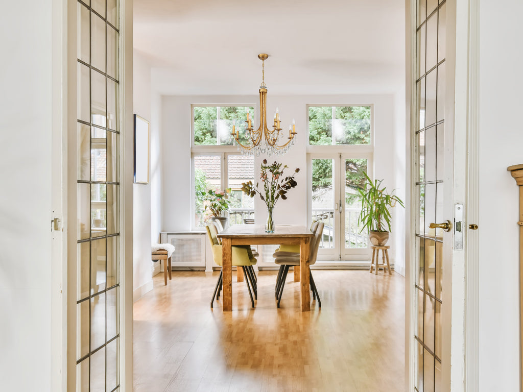 A classic yet moderns style with slim, upward curved arms strung in curtains of faceted crystal jewels, create visual interest. Complementary to a variety of home décor styles this chandelier will work in any space.
