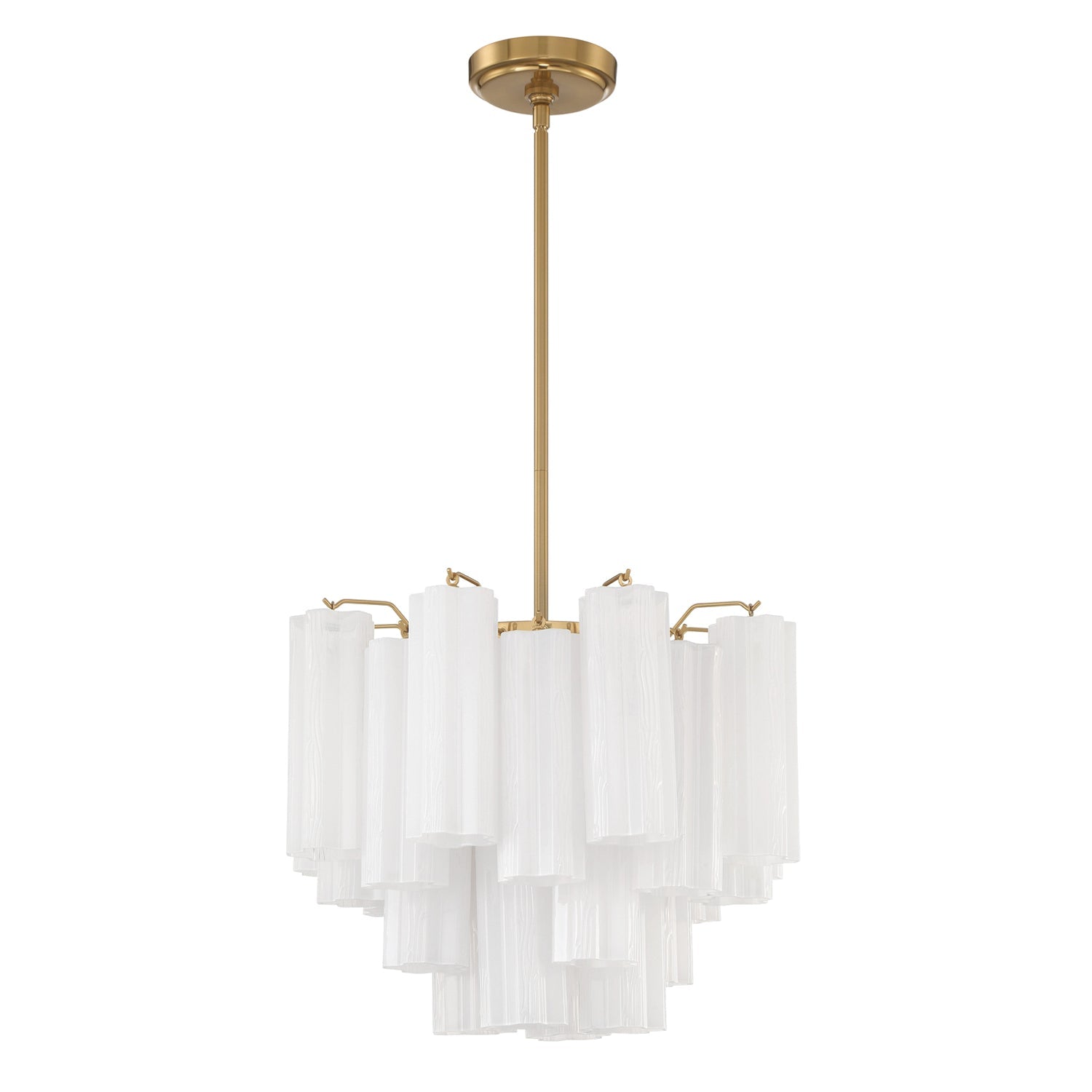 The captivating Addis Lighting Collection is a modern-day interpretation of the iconic mid-century Tronchi chandelier. Inspired by its predecessor's sleek lines and geometric shapes, the Addis features a polished Chrome or Aged Brass metal frame that exudes sophistication and style. Its unique design showcases transparent tiers of textured Tronchi glass tubes, forming a mesmerizing 5-point rounded star shape. Choose from a range of glass colors, including clear, amber, smoke, and white, or the stunning Autumn option, which features a captivating multicolor disposition of amber, clear, and smoke Tronchi glass. The Addis Lighting Collection offers various sizes and finishes, allowing you to find the perfect fit for your space while adding a touch of timeless elegance.