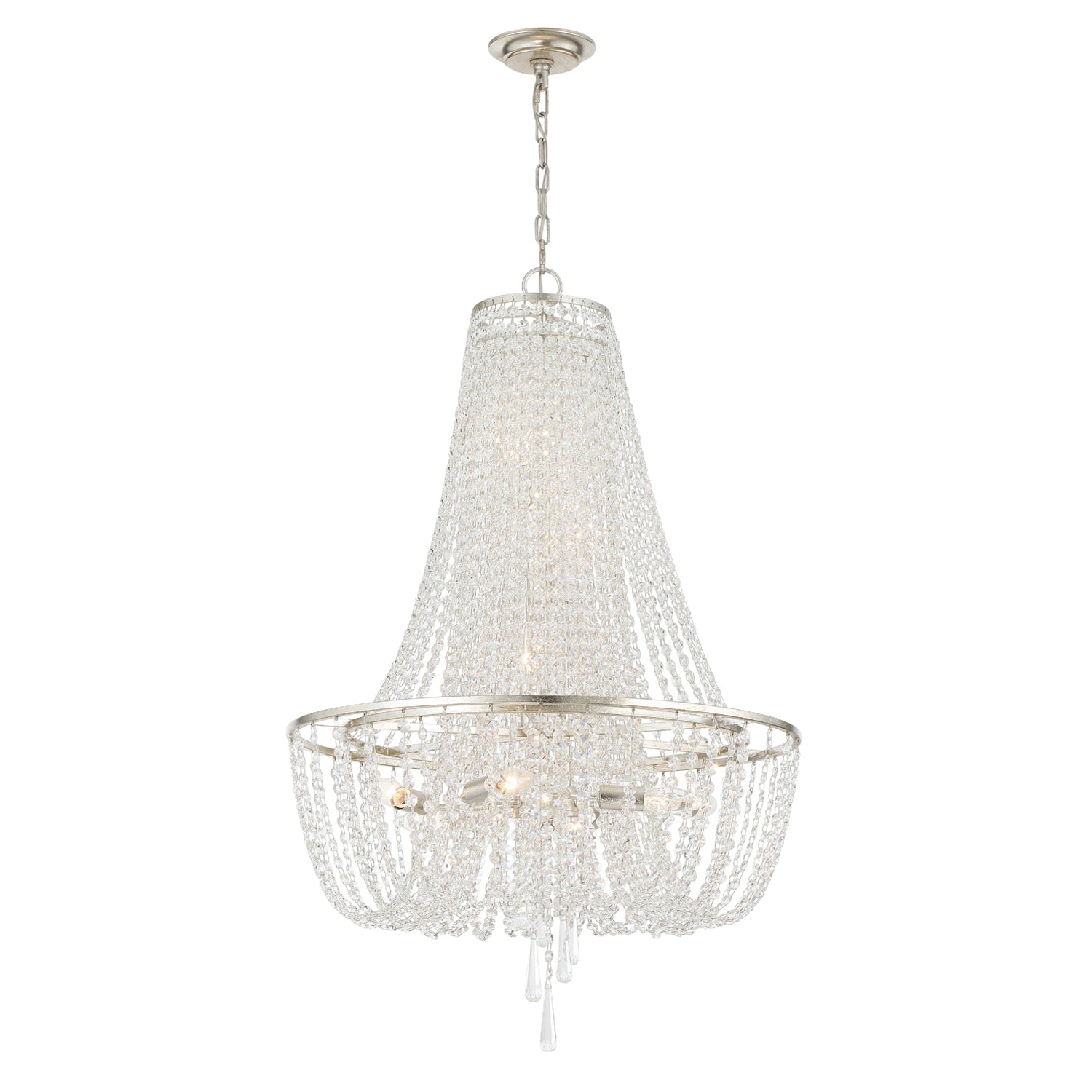 The glamorous Arcadia light features strands of faceted cut crystal jewels draped from a simple frame, creating a bowl-shaped silhouette. Designed to grace a bedroom, hallway, or entry this dazzling fixture will transform a room with its traditional elegance.