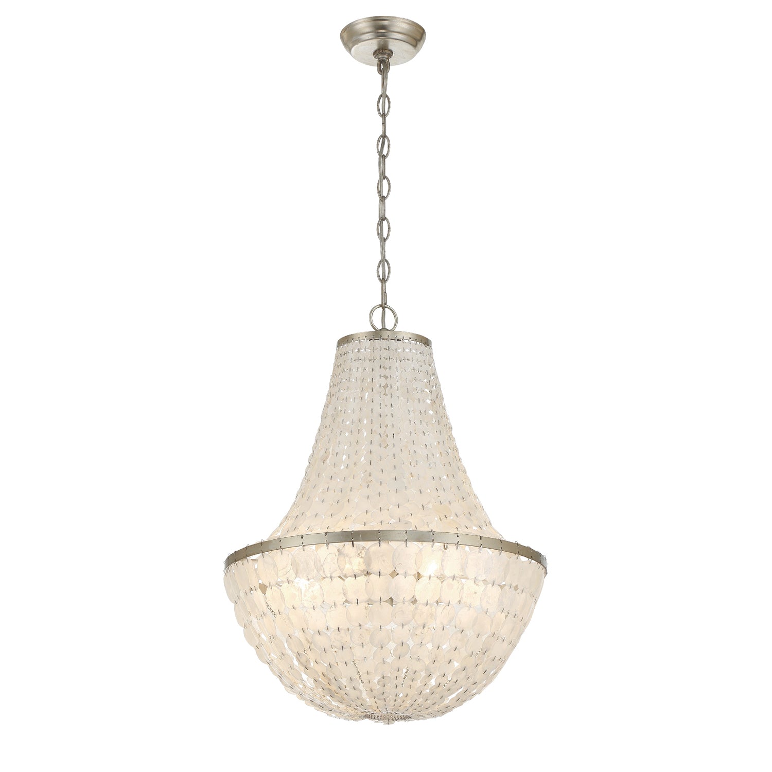 The Brielle Collection is an organic mix of glamour and elegance. The hand painted metal finish offset organic, natural textured Capiz shells to form the luminous elegance of this fixture.
