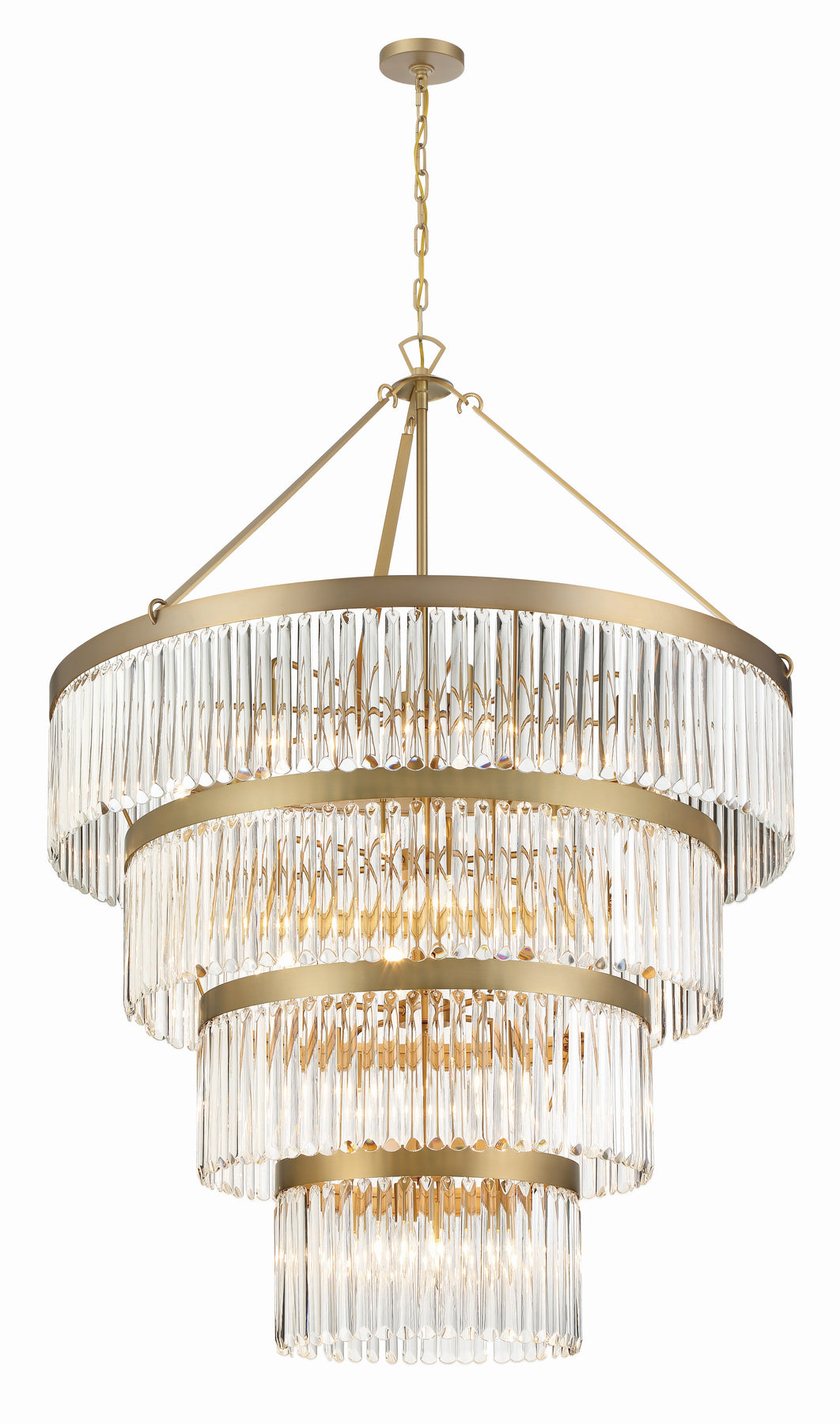 Art deco design is exemplified in the Emory collection. The collection features a row of smooth glass prisms hanging from a steel frame. Both the Black Forged and Modern Gold finishes, add all the sparkle and glamour you need in a fixture.