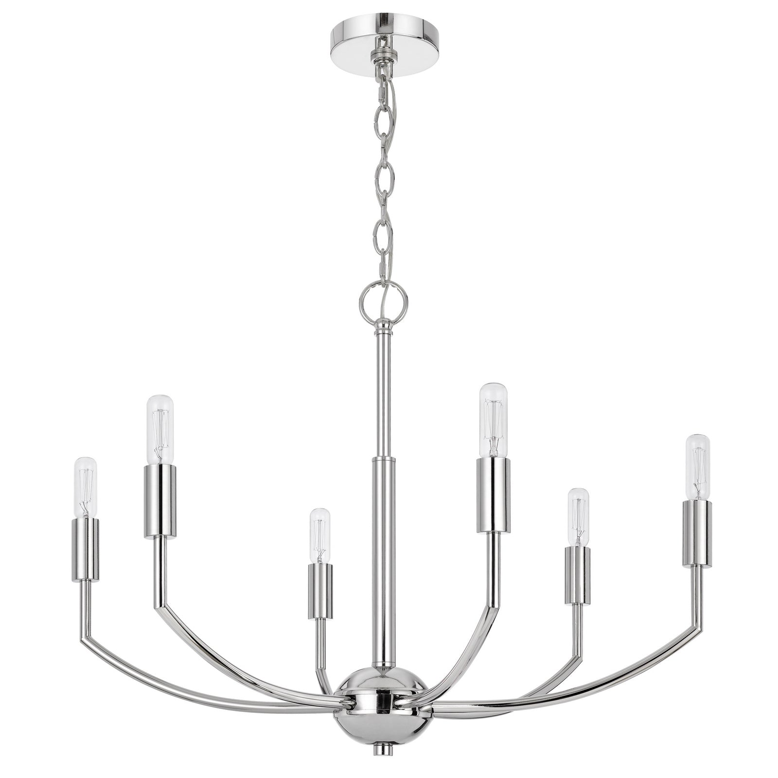 The Maxton 60W x 6 Metal Chandelier is a stunning modern interpretation of the classic candelabra style, perfect for elevating your home decor. This hardwired fixture showcases durable metal construction and requires six E12 medium base bulbs (not included), with a total wattage of 360W. It comes with a 72-inch chrome chain and an included canopy, allowing for versatile installation options. The chandelier ships in one carton and requires minor assembly, making it a convenient choice for any space in your home.