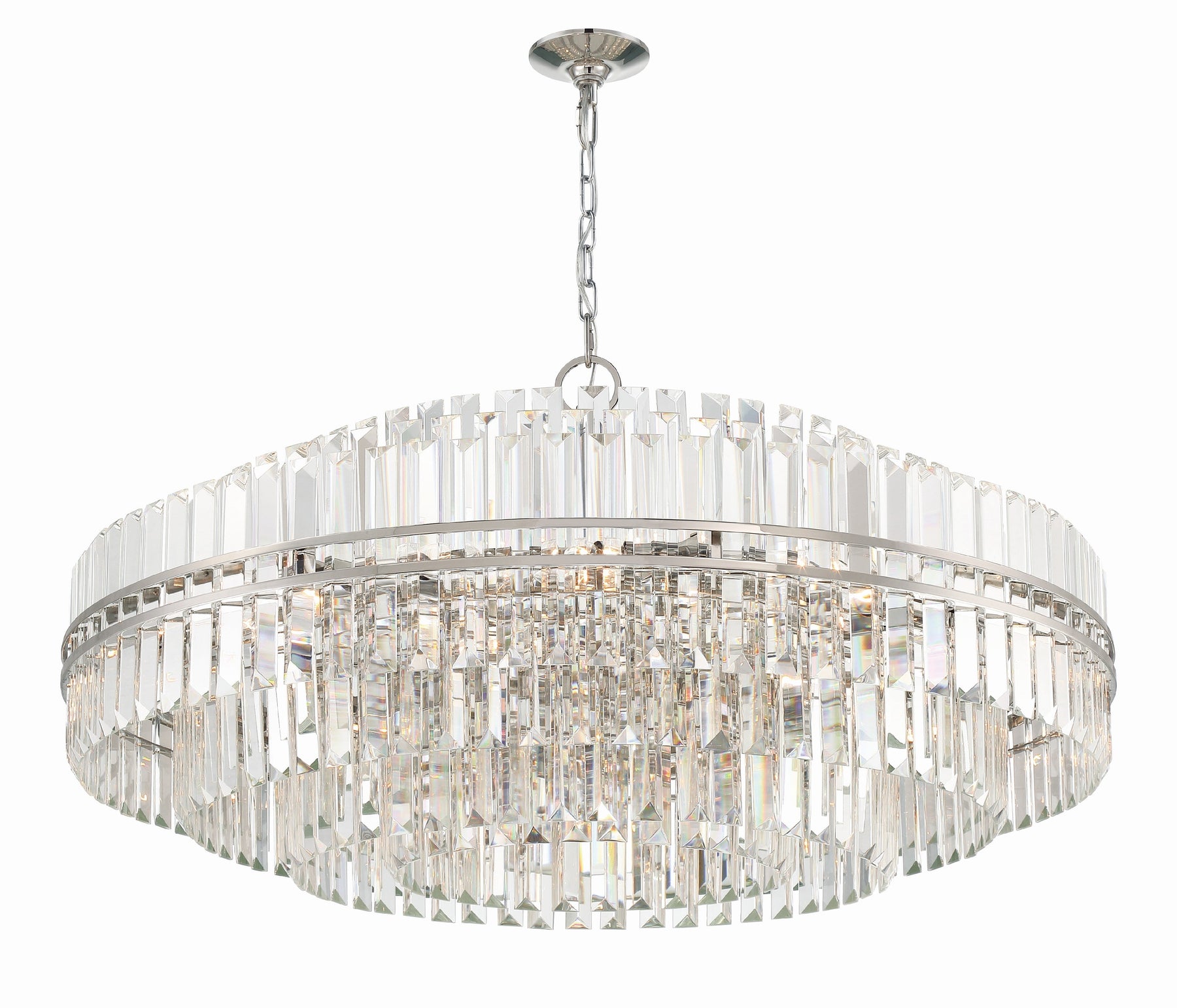 Create a lasting impression with the Hayes collection. Doubling as a piece of art, the Hayes is comprised of tiered multi-faceted crystal secured by a Polished Nickel steel frame. Its sleek polished finish modernizes its surroundings while creating a focal point for a room.