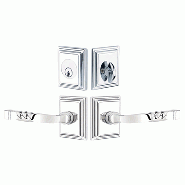 - Emtek Solid Brass Santa Fe Door Lever Deadbolt with Wilshire Rosette (Polished Chrome Finish)