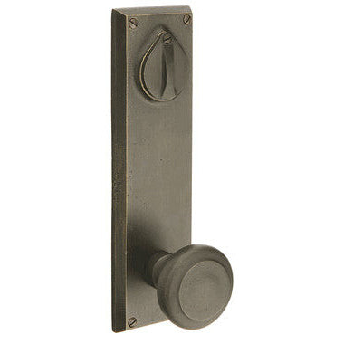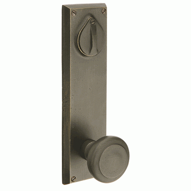 Sandcast Rectangular Keyed Style Passage Entryway Set (Medium Bronze Finish) - The locking door entryway set shown here features a delicately crafted rectangular design and a fine medium bronze finish. Measures 2 1/2 inches wide by 8 3/4 inches tall with a 5 1/2 inch center to center hole spacing. Includes a pair of standard 2 1/8 inch door preps. Sold as a complete set, with knob, latch and strike plate. Standard latch is for 2 3/8 inch backset, please specify if a 2 3/4 inch backset is required.
