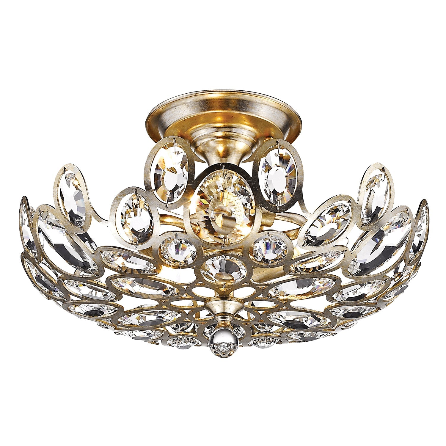 Elegantly embellished with jewel inspired crystals, the Sterling collection exudes an aura of romance. Graduated crystal gems organically encrust the fixture and are accented by a distressed twilight finish, which is the perfect mixture of silver and gold tones. The eclectic flair of this light is perfect for a variety of home decor styles, but are definitely an opulent statement.