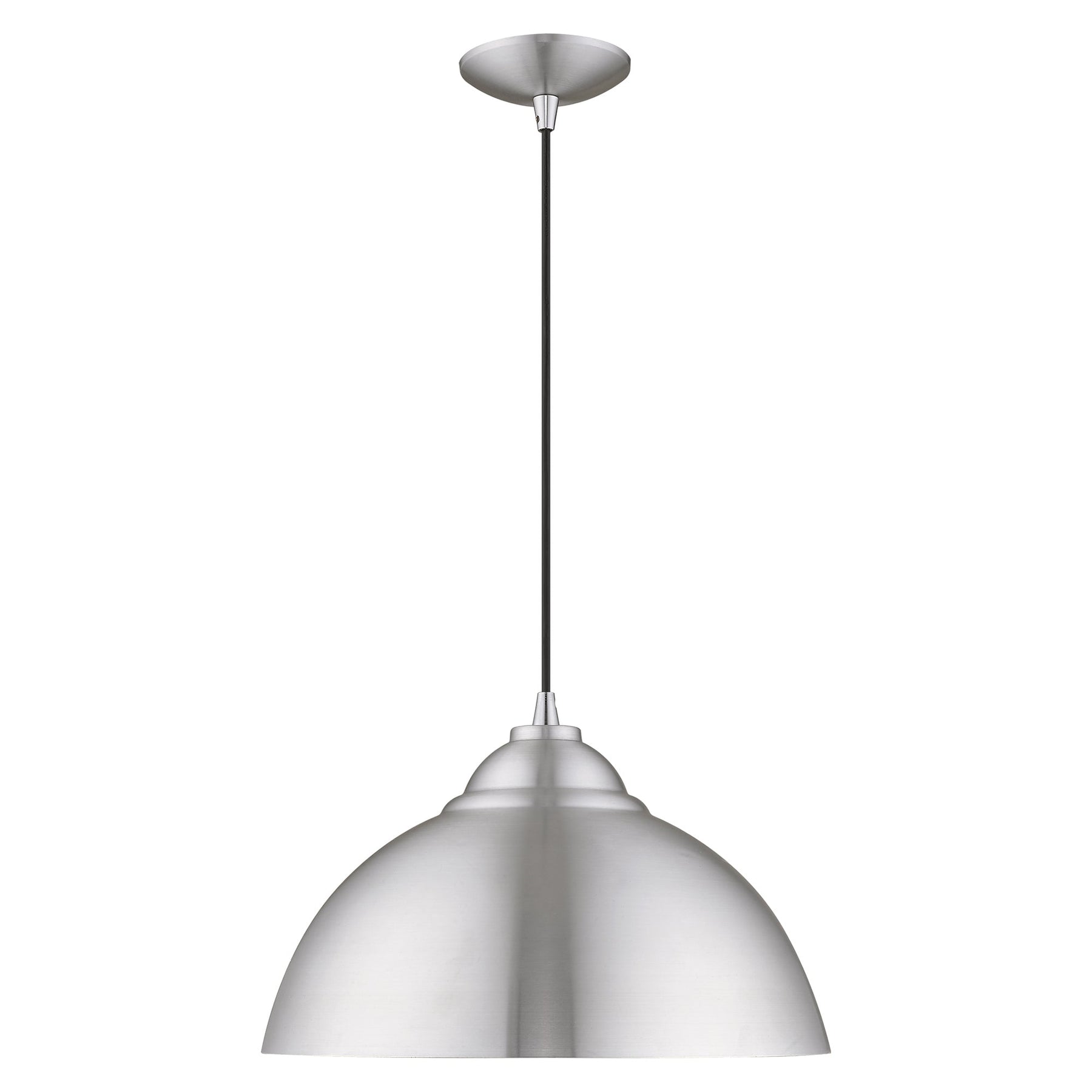 The 41180-66 Mini Pendant Light in Brushed Aluminum offers a modern and industrial chic look, perfect for enhancing contemporary spaces. This pendant features a stunning brushed aluminum shade with a shiny white finish on the inside, providing contrast and elegance. It is designed to accommodate one medium base bulb with a maximum wattage of 60W (not included) and features an adjustable height ranging from 15 inches to 75 inches. With a diameter of 15.5 inches and a 5-inch canopy, this fixture is suitable for damp locations, making it great for versatile applications, including kitchens and dining areas. The polished chrome finish accents add a touch of sophistication to its overall design.