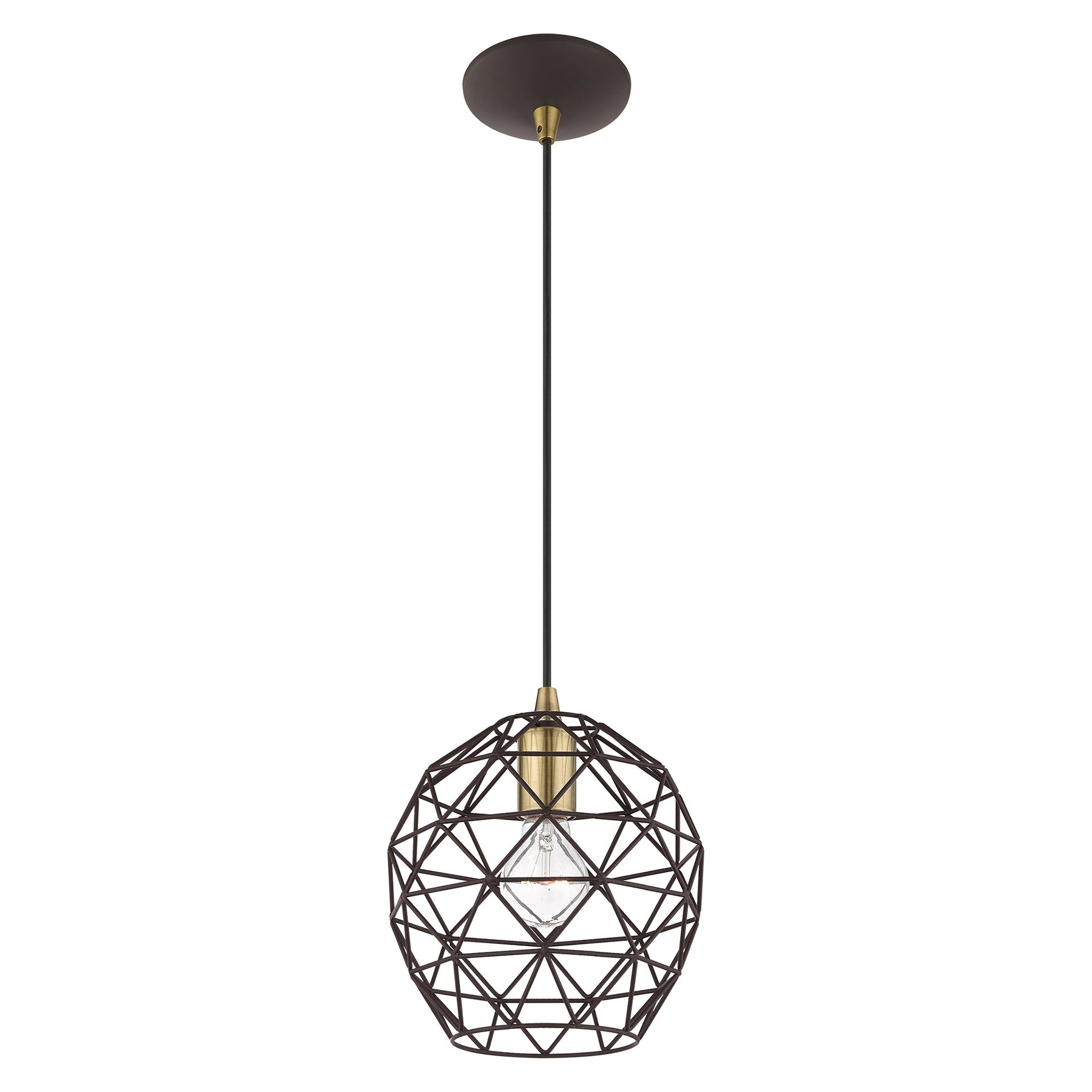 The 41326-07 Geometrix Mini Pendant in Bronze is a stunning addition for those looking to enhance their space with a contemporary flair. With a height adjustable from 13 inches to 75 inches and a diameter of 8 inches, it fits a variety of room sizes. This fixture accommodates one medium base bulb (not included) with a maximum wattage of 60W. The geometric metal shade features an elegant bronze finish with antique brass accents, offering a striking visual appeal. Additionally, it's suitable for damp locations, making it versatile for different environments.