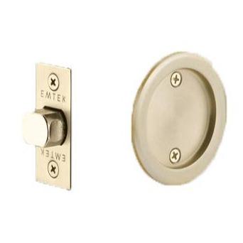 This tubular passage set is designed for a pocket door (such as a bathroom or study door). It is constructed from solid brass and measures 2 1/2 inches in diameter. This item is available in passage (shown), privacy and double doors. Comes in a variety of finishes. The average lead time for this pocket door set is approximately 3 to 5 business days.