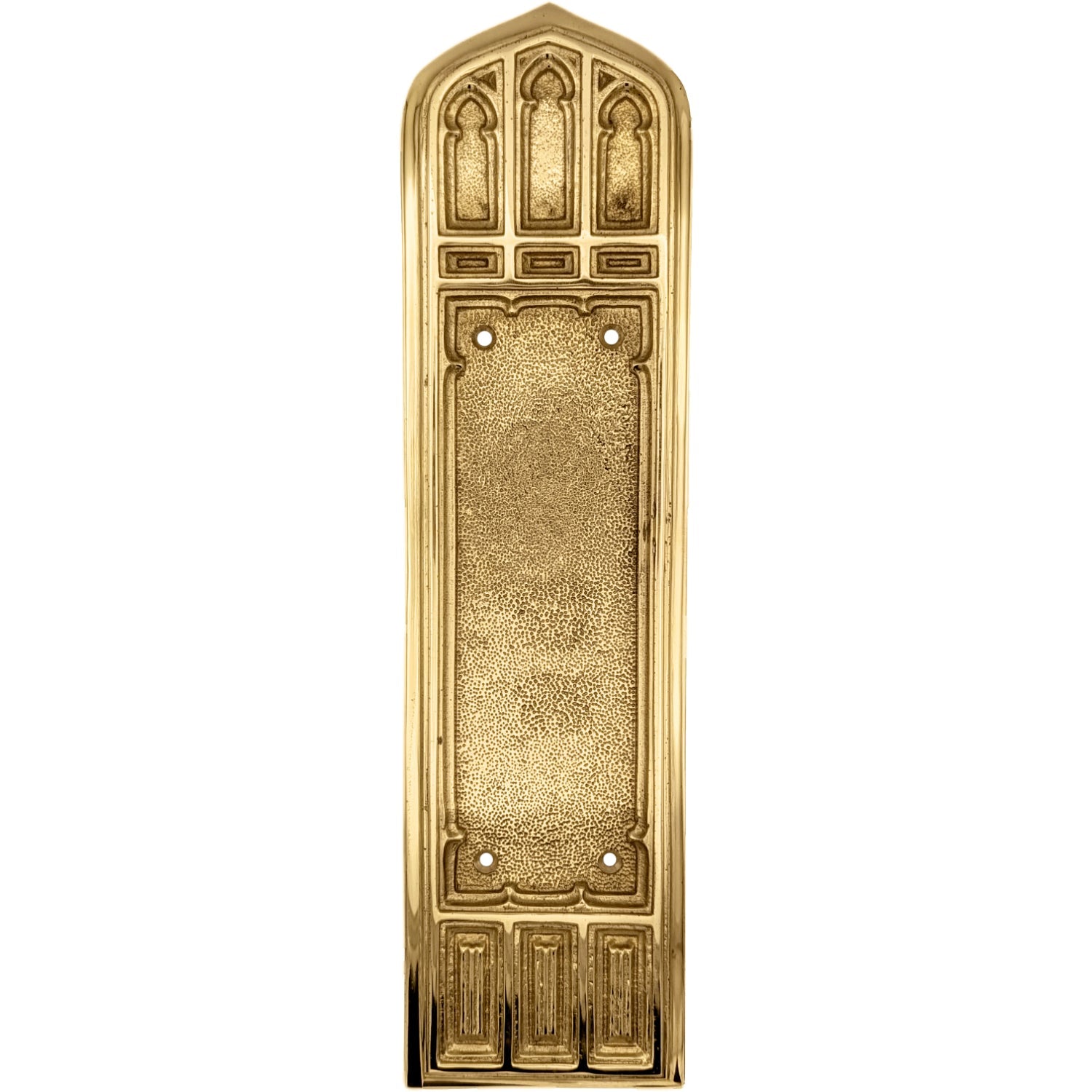 This Push Plate measures 12 1/4 inches by 3 1/4 inches. Highly ornate detailing and solid brass construction. Available in Polished Brass, Antique Brass, and Polished Chrome.