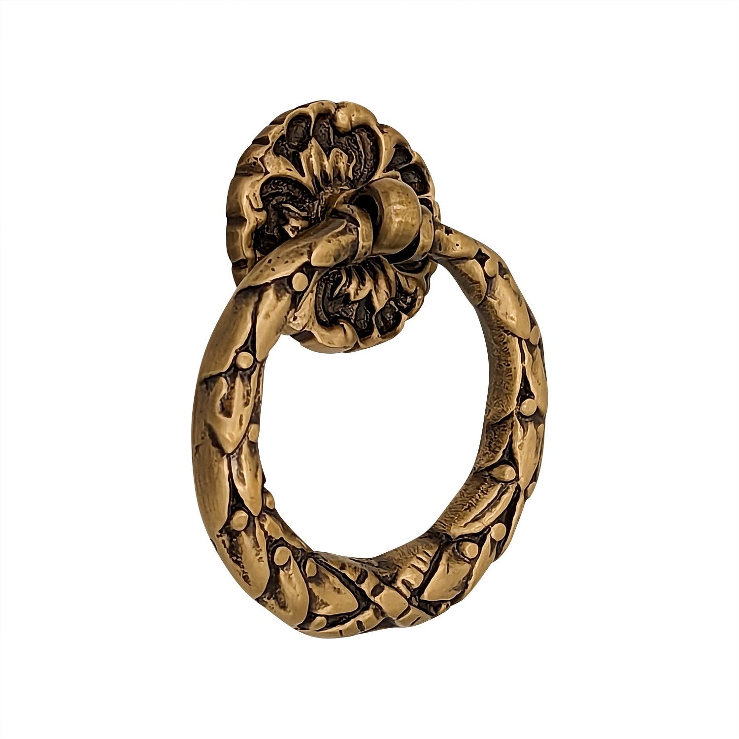 2 1/4 Inch Solid Brass French Floral Drawer Ring Pull
