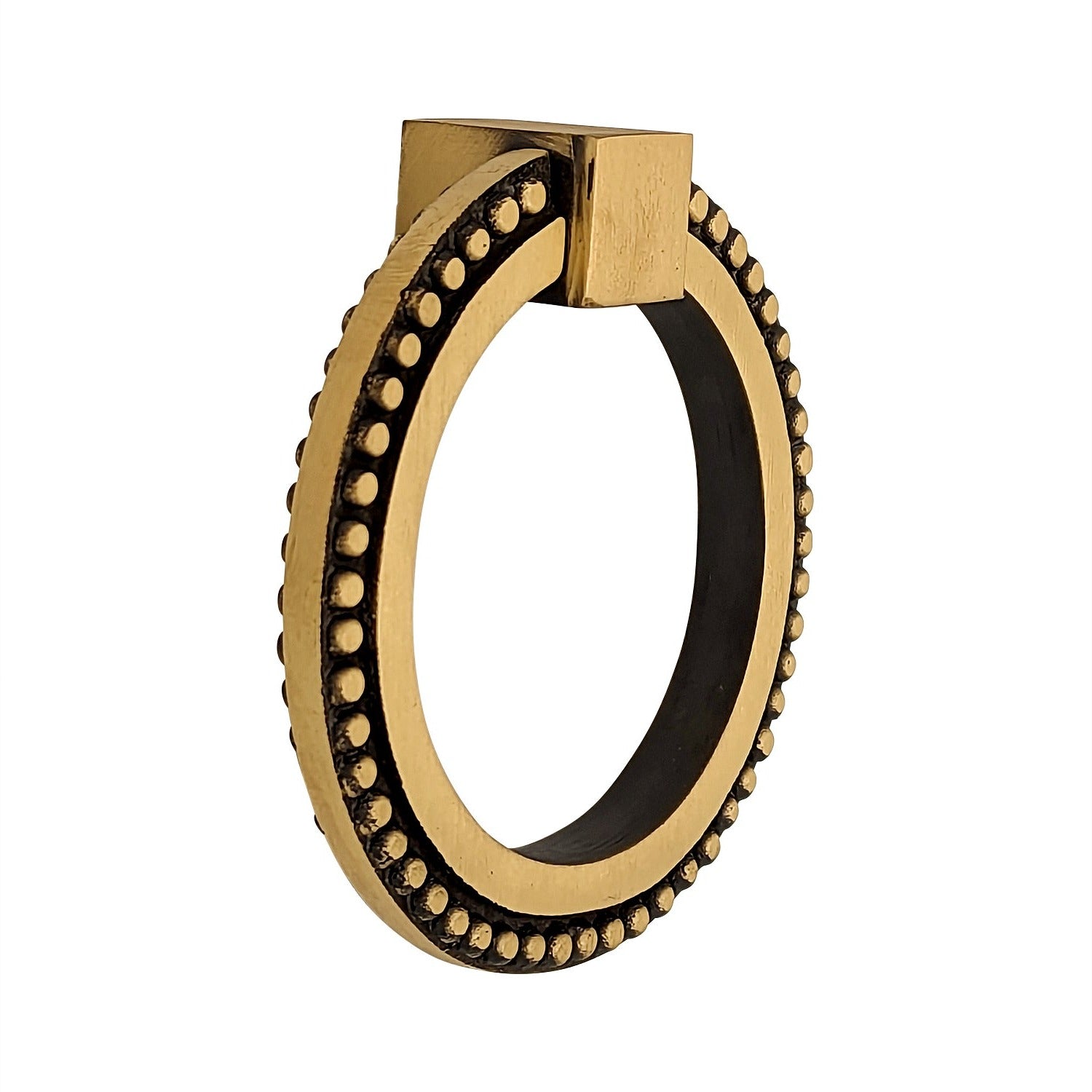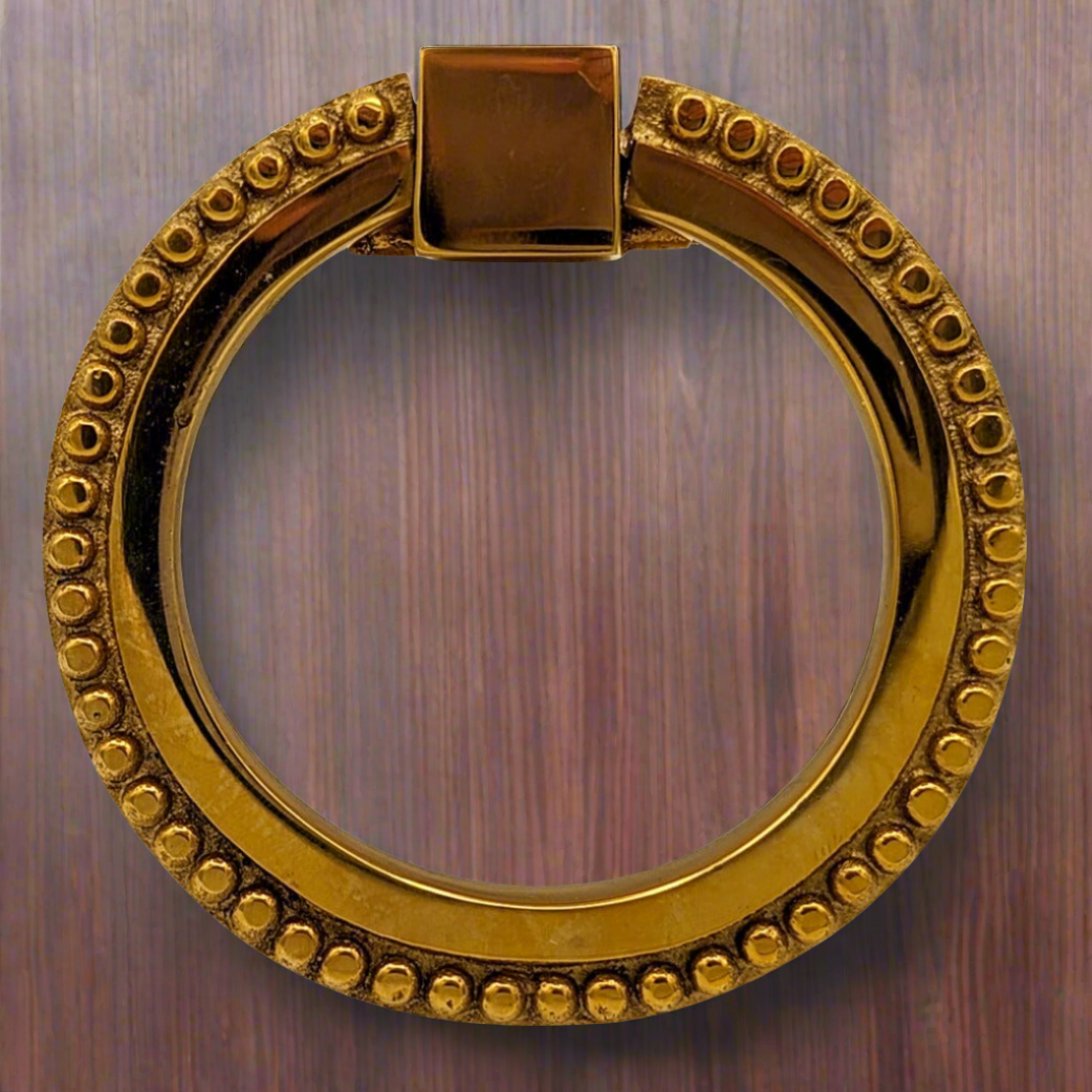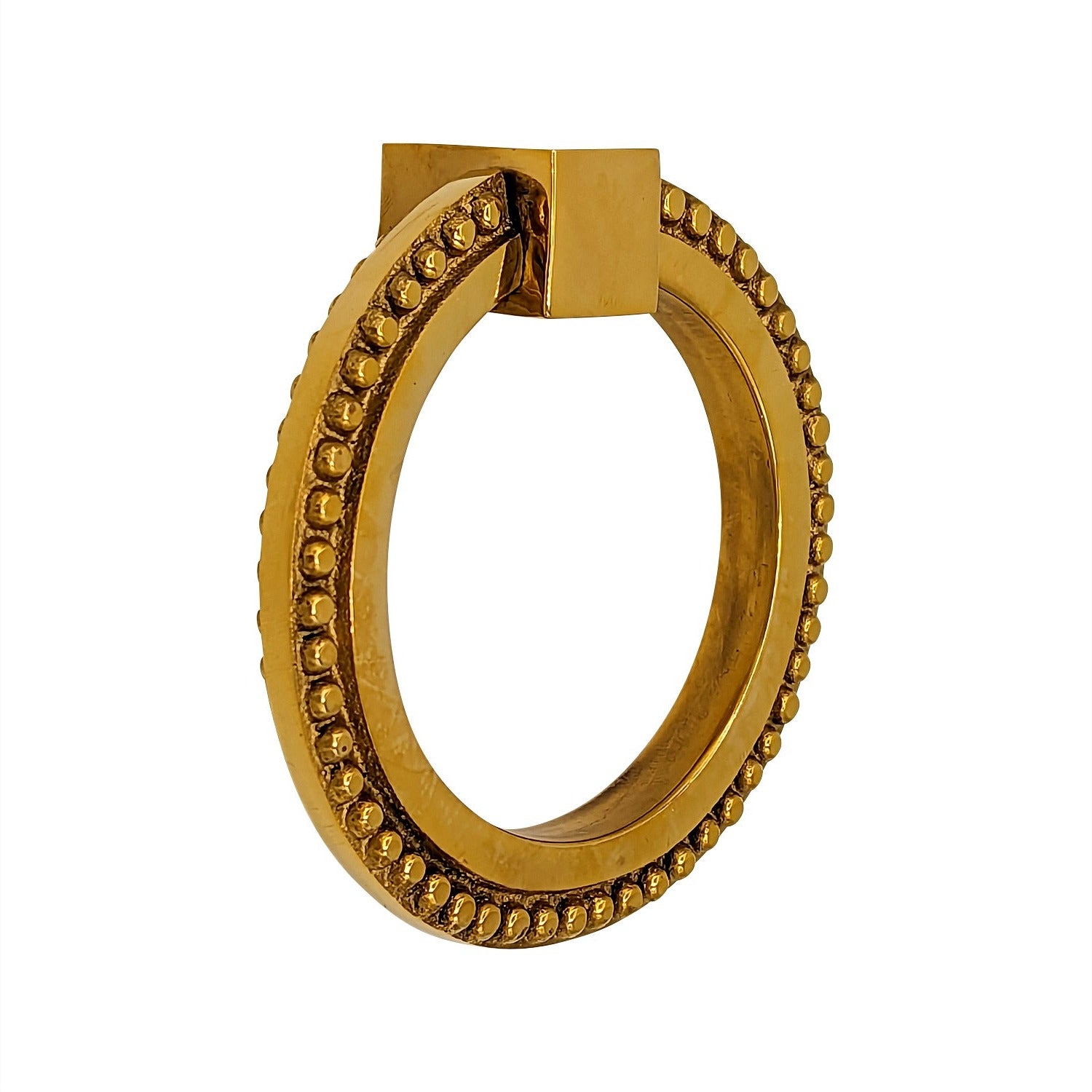 Elevate your furniture with the 3-inch Solid Brass Beaded Drawer Ring Pull, a refined combination of classic charm and meticulous craftsmanship. With intricate beaded detailing, this drawer pull becomes an exquisite accent, seamlessly blending timeless design with sophistication. Transform your living spaces with this distinguished accessory, where the polished brass finish and attention to detail converge to create a statement piece that transcends trends.