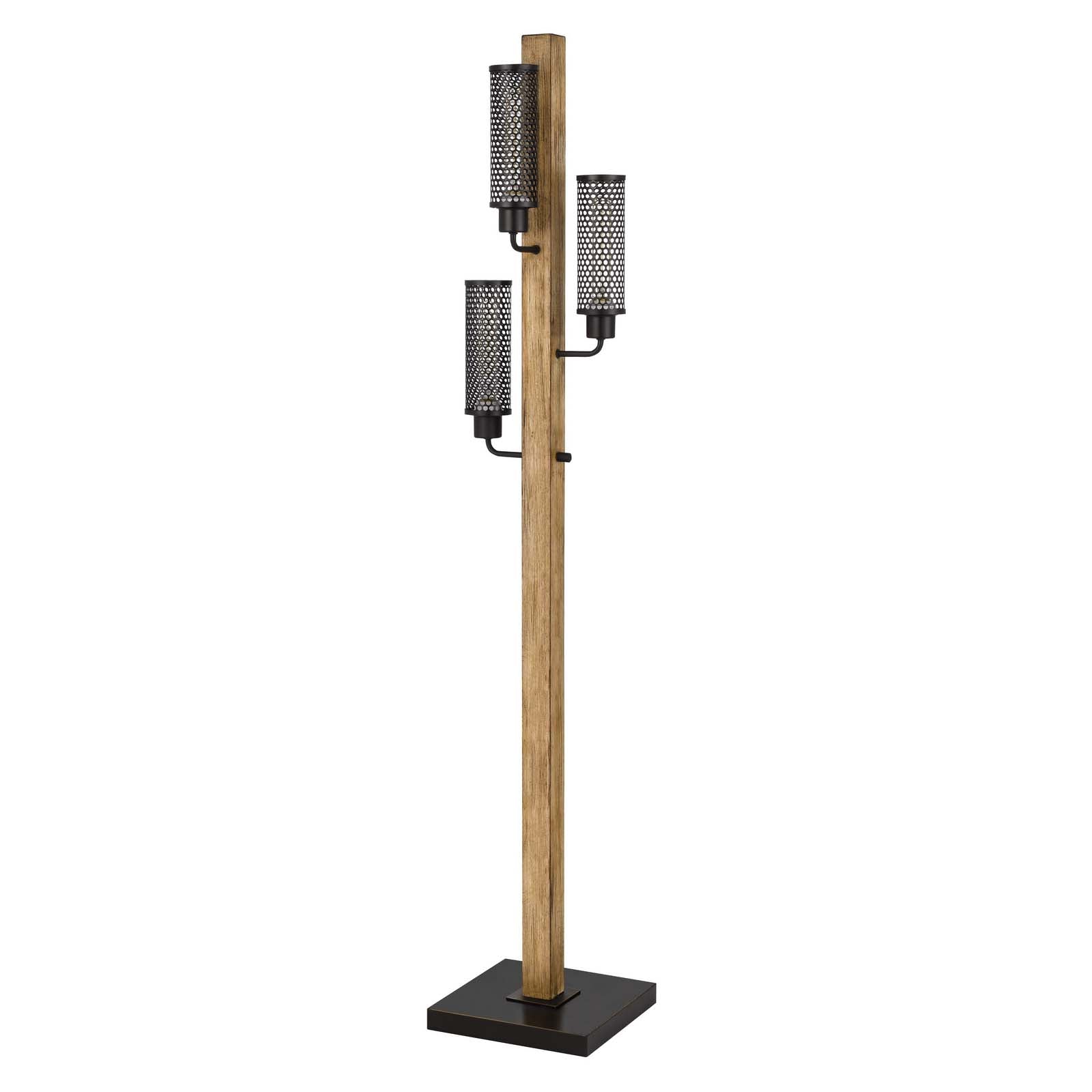 60W X 3 LENOX LANTERN STYLE RUBBER WOOD / METAL FLOOR LAMP WITH MESH METAL SHADES